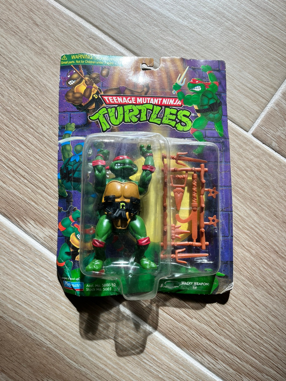 accessories, the figure is meticulously crafted from durable plastic, mirroring the quality of the era with vibrant colors and attention to detail.As a standout collectible, this Raphael figure remains in its original, unopened packaging, untouched by time. Celebrate your childhood or expand your collection with this iconic character from the Teenage Mutant Ninja Turtles series, a must-have for fans and collectors of all ages. Whether for display or play, this action figure is ready to bring the excitement of the turtle-powered adventures to life.