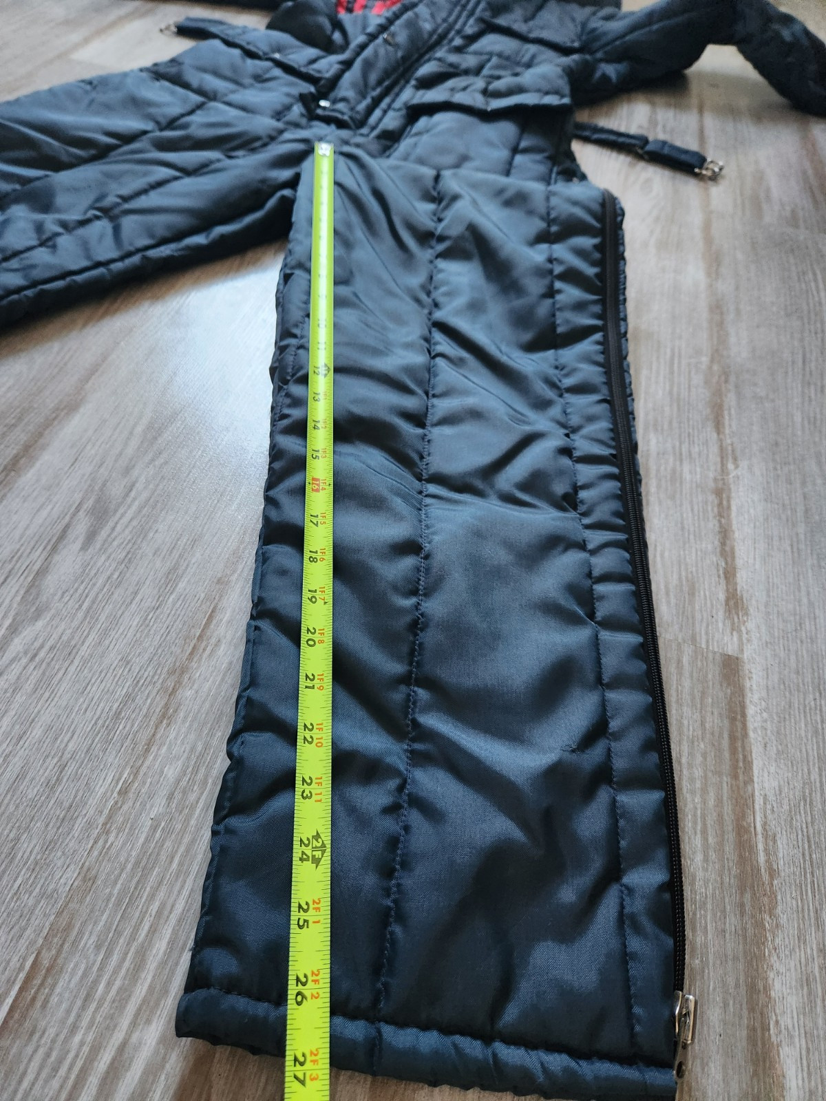PLEASE NOTE - sizing tag has been removed. Sizing is based on measurements provided. Please check and verify these measurements before purchase. Has a stretched string for button attachment on hood as shown. This is a vintage Walls Blizzard Pruf snowsuit in navy blue,