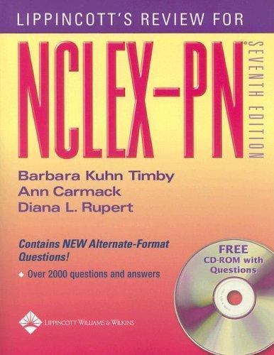 Lippincott's Review for NCLEX-PN [With CDROM]by Timby, Barbara Kuhn; Carmack, Ann; Rupert, Diana L.Pages can have notes/highlighting. Spine may show signs of wear. ~ ThriftBooks: Read More, Spend Less