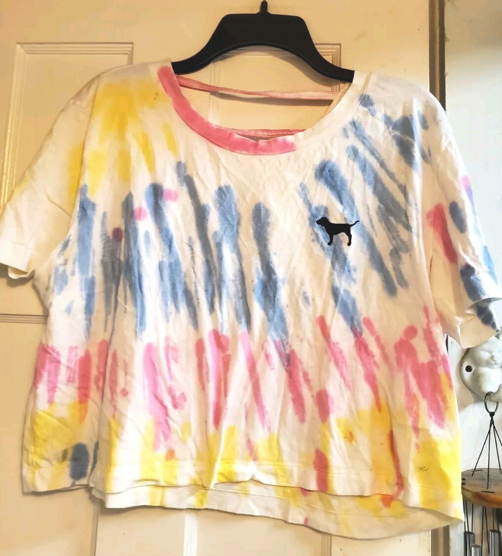 PINK Victoria's Secret Tie Dye Short Sleeve Crop Shirt Strappy Back Medium Women Specs