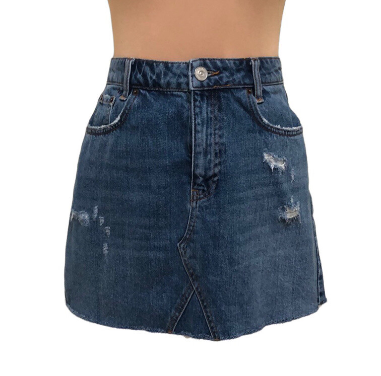 Urban Outfitters BDG High Rise Denim Skirt Size Medium Blue Cut Off Raw Hem. High waisted, mini length, intentionally distressed and ripped up skirt with raw hem.90s Grunge Punk Urban High Waist 14oz