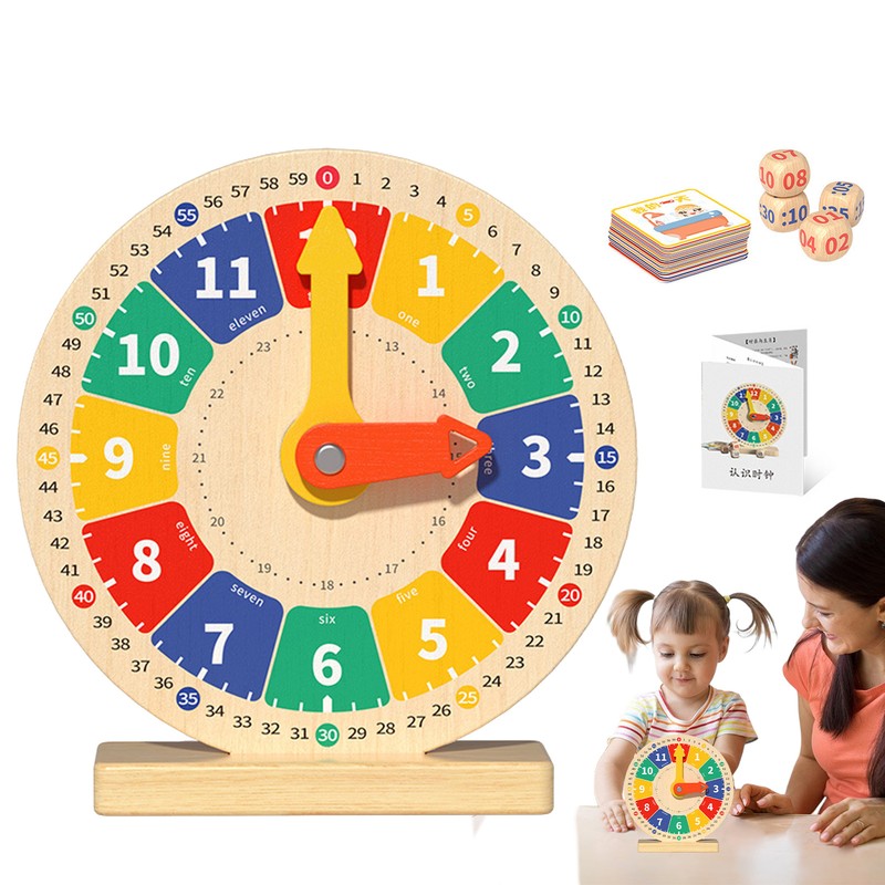 Time Learning Teaching Aid for Playroom Clocks Practice Homeschool Supplies Durable and Eco-Friendly: Made of anti-fade wood material that is not easy to deform, this kids learning clock is safe, durable, and harmless. It uses superior material and eco-friendly water-based paint that is sturdy and harmless. Educational Toy: Increase Parent-Child Interaction and Enhance Learning Skills. This kids learning clock is a fun and interactive way to teach your child how to tell time, foster a love of learning, and promote cognitive development. It features colorful hands, numbers, and shapes that stimulate your child's curiosity. Portable and Decorative: This kids learning clock is small in size, about 20*3.5cm/7.87*1.38in, and easy to carry around. It can also be used as a tabletop decor for your kid's room or play area. Attractive Decor: Create a fun learning atmosphere for your child with our interactive kids learning clock. Its captivating design sparks curiosity, imagination, and enhances cognitive skills. The clock's attractive colors, smooth surfaces, and no burrs edges ensure child safety and comfort. Ideal Present: Foster your child's time-telling skills and show your love and care with this engaging learning clock. The perfect gift for any occasion, delight girls and boys with the joy of learning, whether it's a birthday, festival, or Christmas gift. Looking for a toy that doubles as a tabletop decor? Our wooden clock toy is a perfect choice! Made of superior material that's comfortable to the touch, it'll enhance your child's learning skills. Plus, it makes for an awesome Christmas gift! Specification: Product Name: Kids Learning Clock Product Material: Wood Product Size: 20*3.5cm/7.87*1.38in (approx.) Product Weight: 400g (approx.) Packing List: 1 * Kids Learning Clock Notes: Due to the lighting effects and camera angles, there may be a