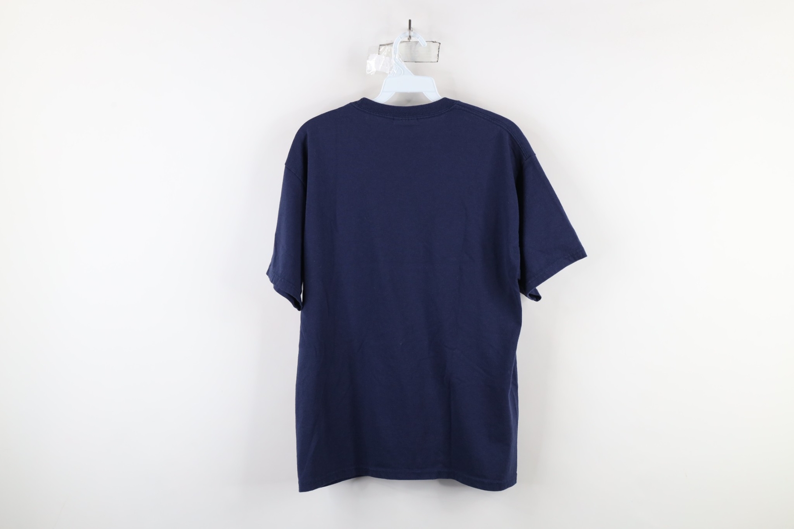 Vintage 90s Hanes Heavyweight Mens Medium Faded Blank Short Sleeve T-Shirt Blue Specs