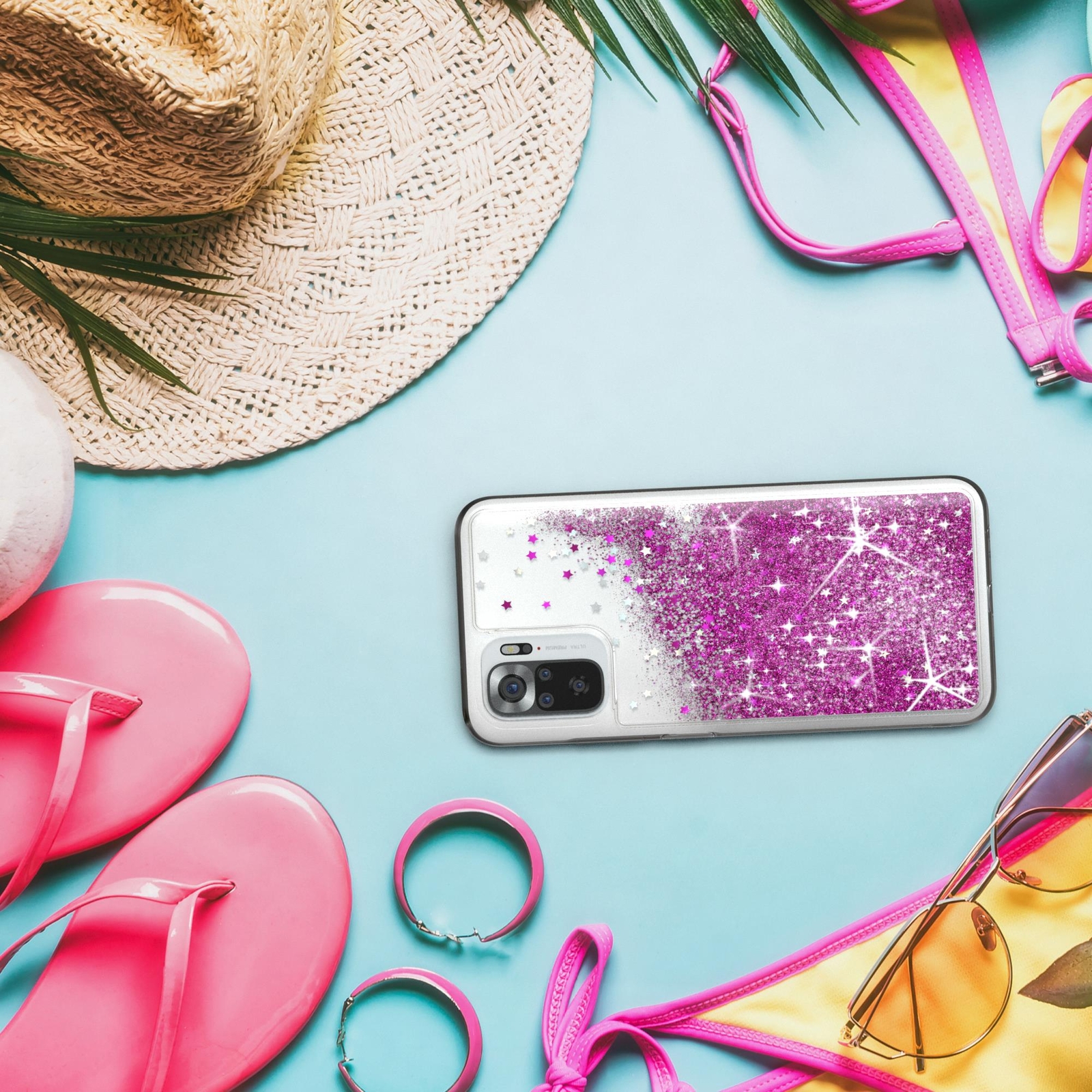 Für Xiaomi Redmi Note 10 / 10S Handyhülle Flüssig Glitter Hülle Schutz Case Lila