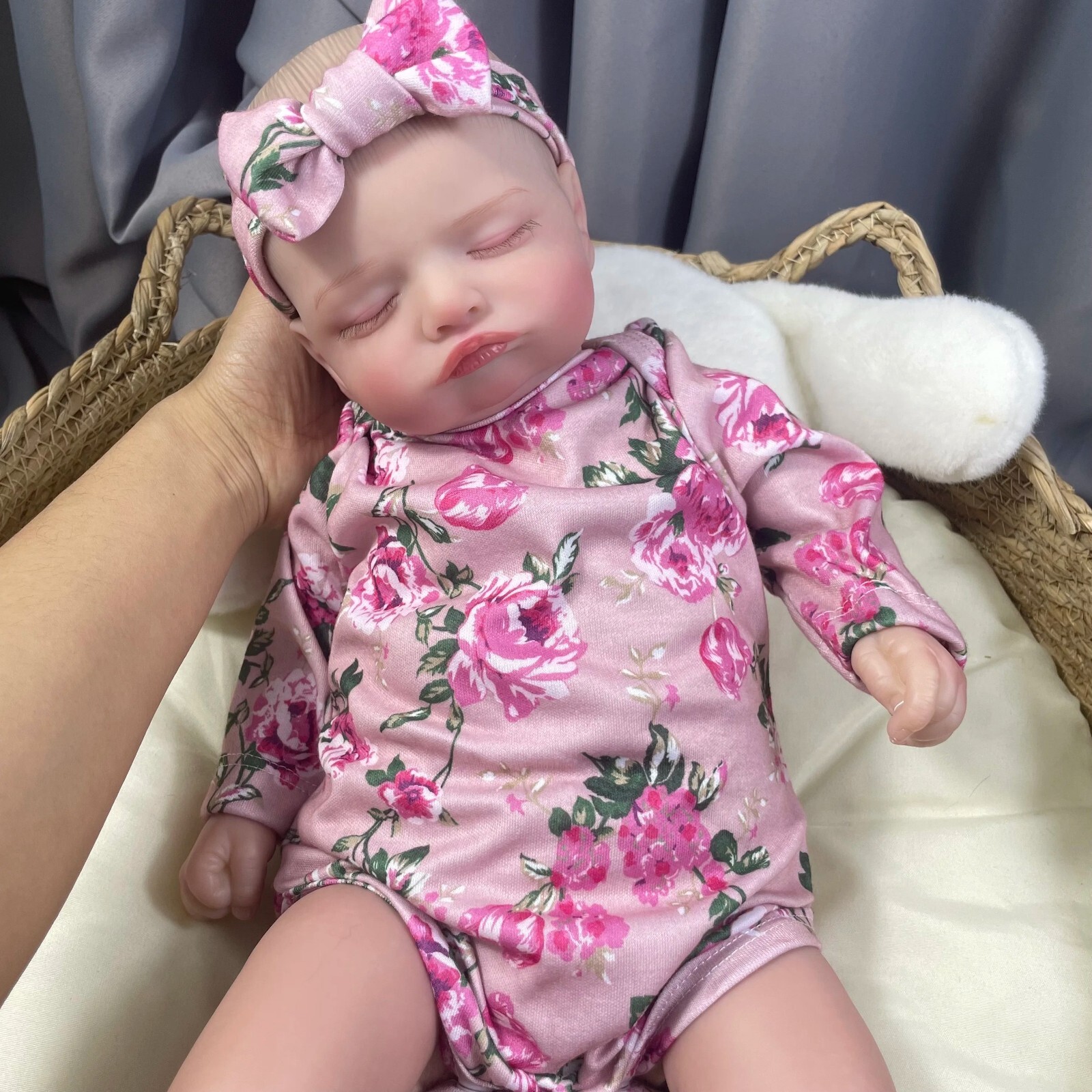Introducing Your Adorable 19-20 Inch Reborn Baby with a Soft Cuddle Body!This lifelike reborn doll boasts a cuddly soft cloth body and realistic features, making it perfect for snuggling and pretend play. Here's a closer look:Huggable Size: Approximately 19-20 inches (43-50 cm) tall, with the measured length including the natural bend of the legs for a realistic feel.Soft & Cuddly: Made with a high-quality soft cloth body for comfortable cuddling.Realistic Features: Sleeping eyes with hand-rooted eyelashes add to the realism.Hand-Painted Hair: Adds a touch of detail and realism.Gentle Baby Powder Scent: Creates a calming experience (scent comes from the safe, non-toxic vinyl material).Versatile Use: This doll can be a cherished companion, a birthday or Christmas gift, a playmate for children, or a heartwarming addition to a doll collection.Please Note:Slight