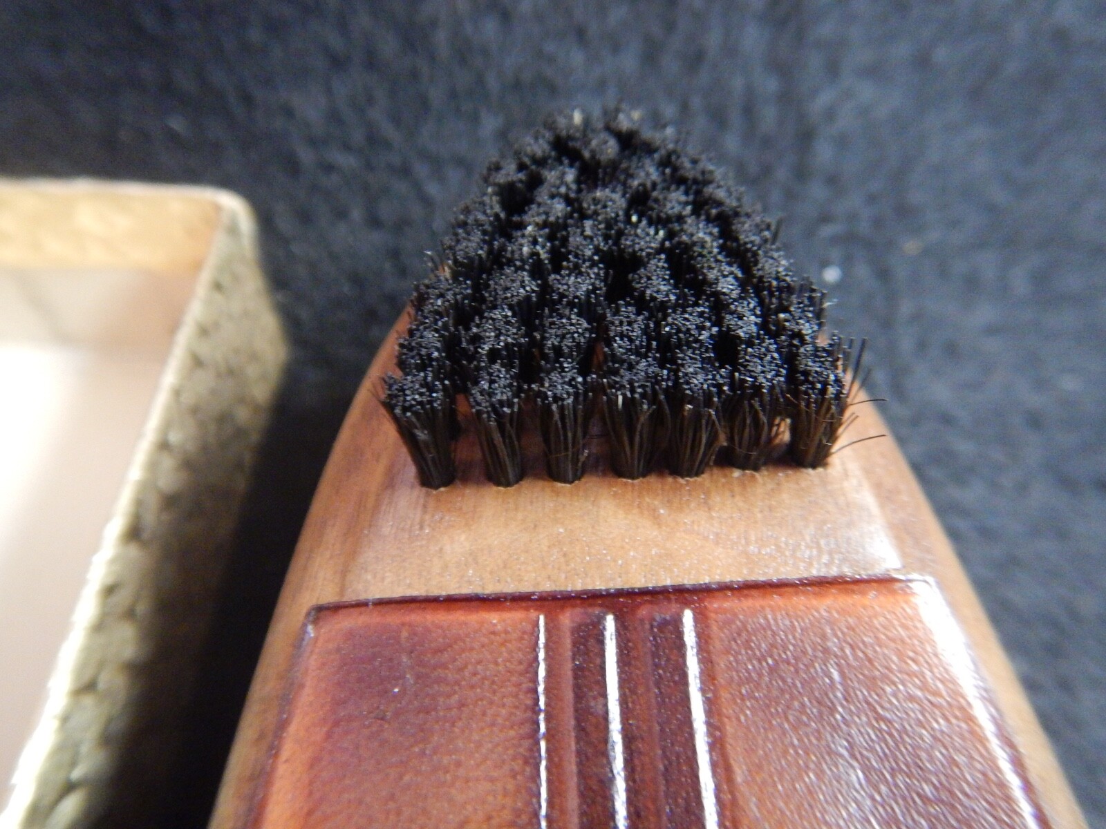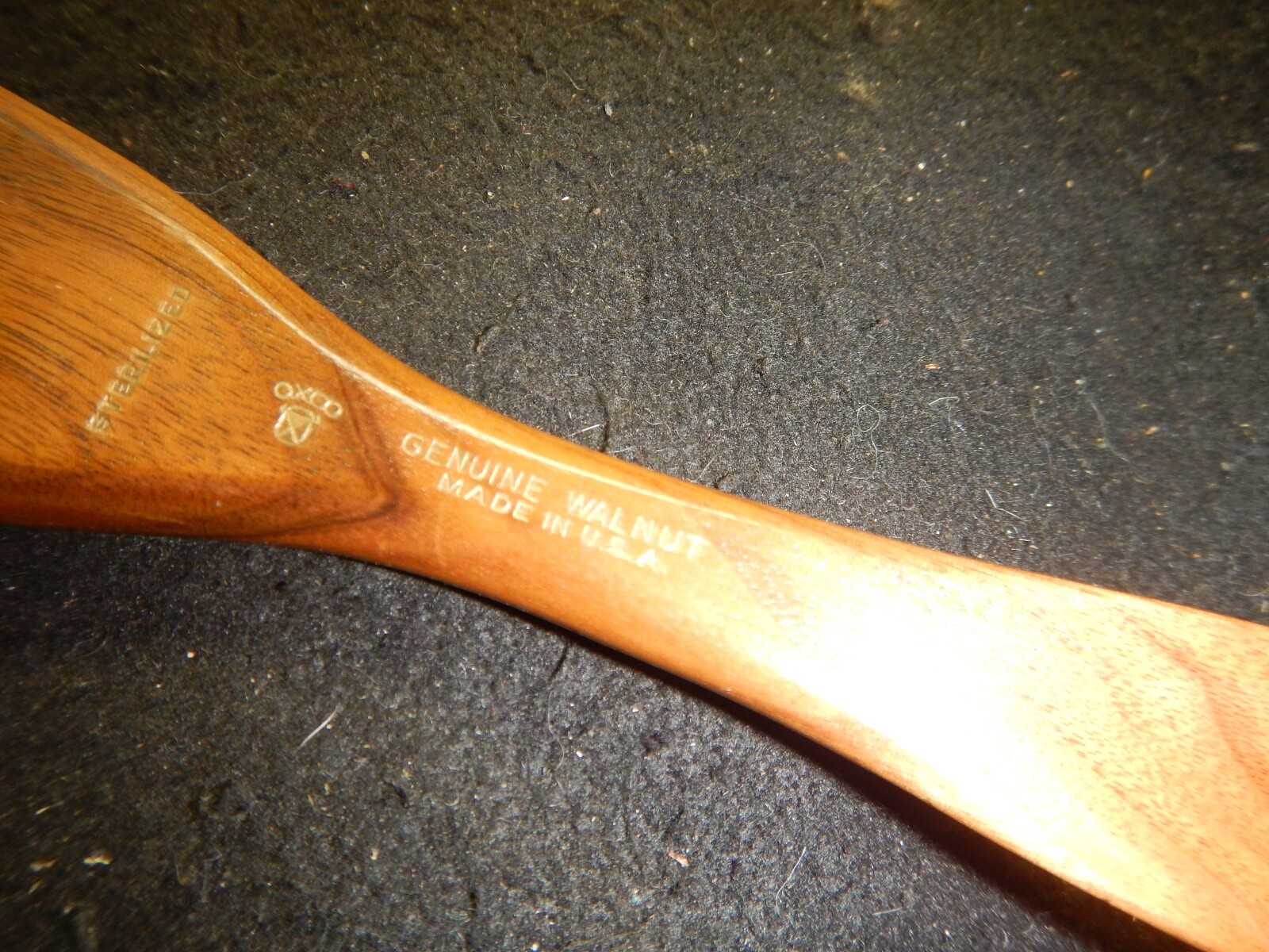 This was quite a nice item for the time and a very nice giveaway to clients. This antique genuine walnut lint nap brush by OXCO is a unique and vintage shoe accessory from the 1930s. Handcrafted in the United States, this original piece features a brown wood design with an Art Deco look. It serves as a functional shoe horn with an added bonus of a lint brush, making it a versatile and special addition to any collection of vintage