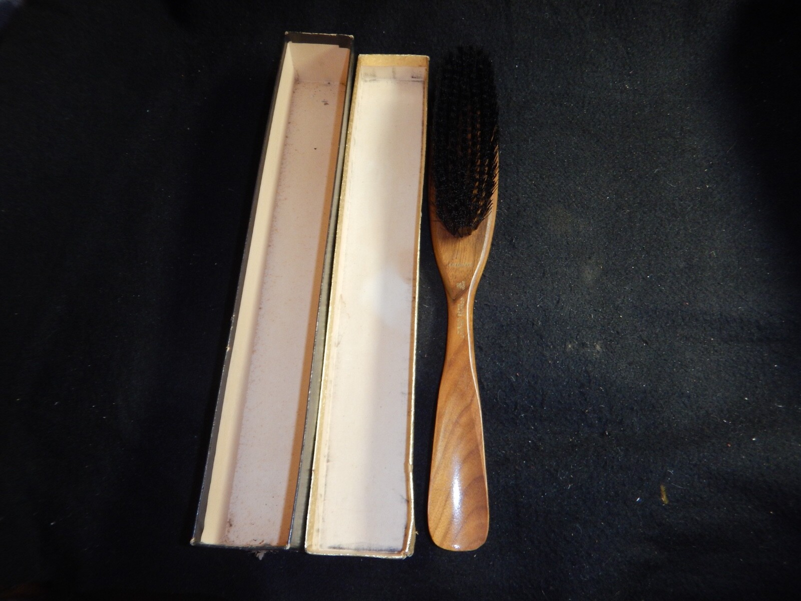 Antique Genuine walnut lint nap brush OXCO Compliments of Hubman Cement Vault Co