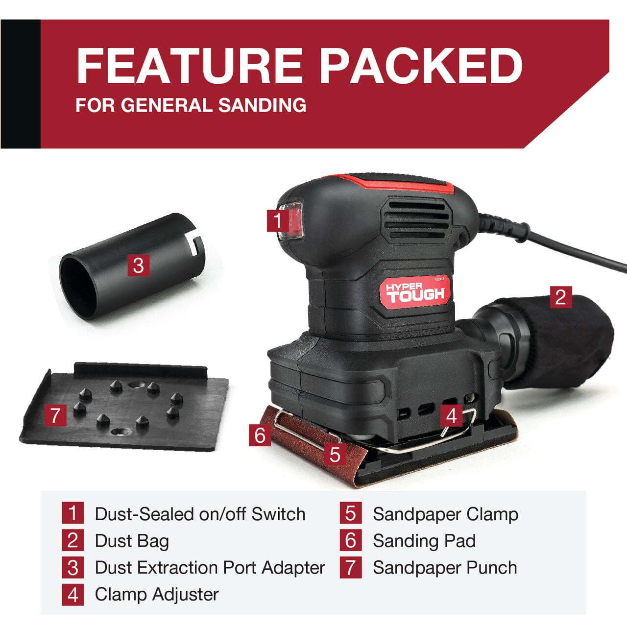 2 Amp Corded 1/4 Sheet Palm Sander with Dust Bag, Vacuum Hose Adapter
