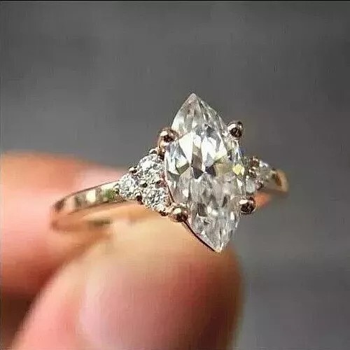 2Ct Marquise Cut E-F/VVS1 Real Moissanite 18k Yellow Gold Plated Engagement Ring