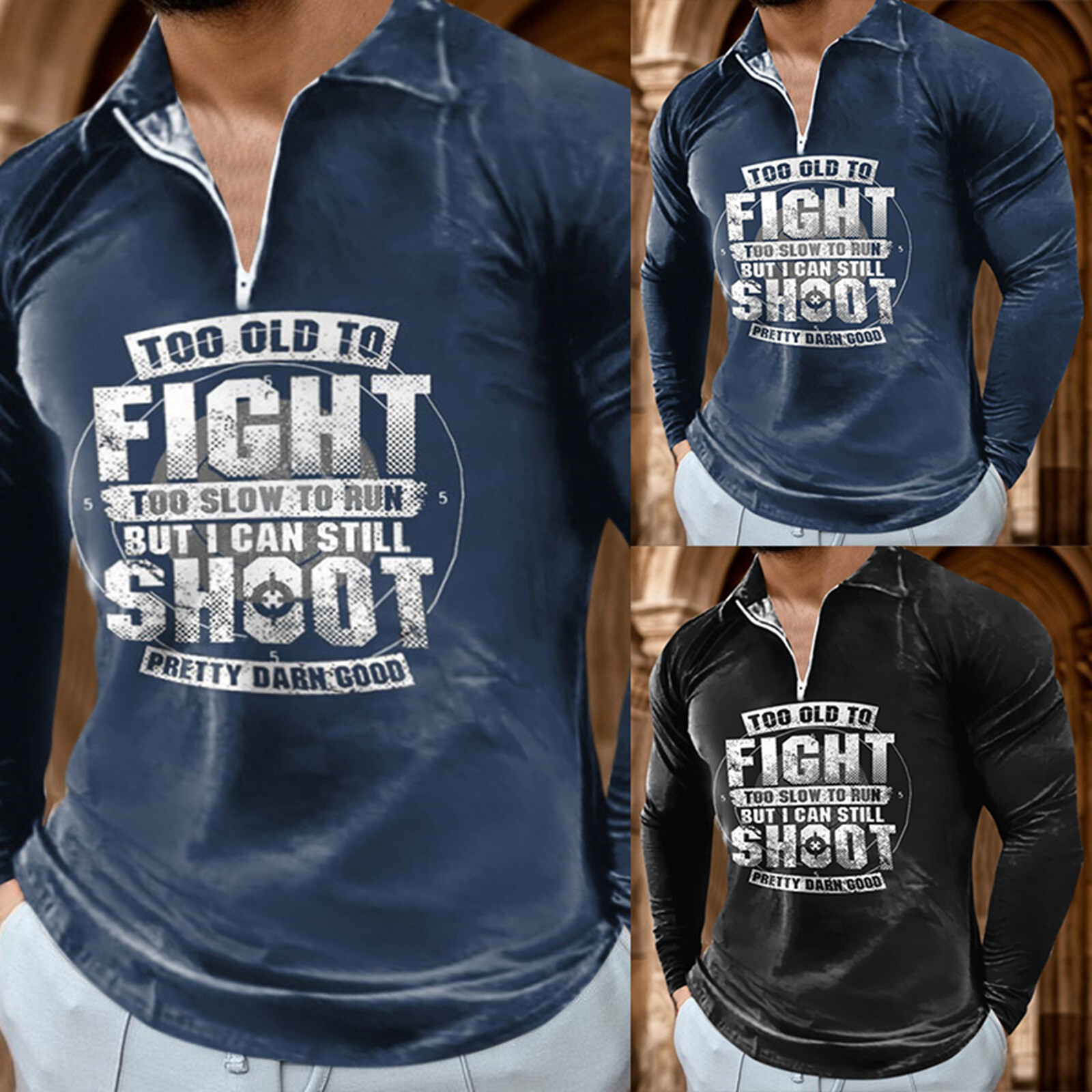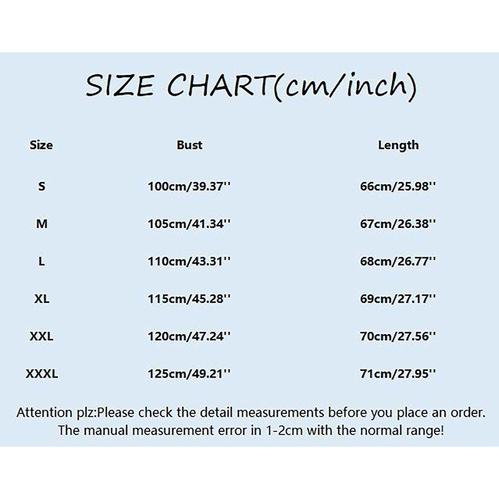 size chart on the picture before placing an Product Description: Men's new letter 3D printed long sleeve street fashion pullover casual men's T-shirt breathable zipper shirt Material: polyester SizeBustLengthS100cm/39.37''66cm/25.98''M105cm/41.34''67cm/26.38''L110cm/43.31''68cm/26.77''XL115cm/45.28''69cm/27.17''XXL120cm/47.24''70cm/27.56''XXXL125cm/49.21''71cm/27.95''Size:SBust:100cm/39.37''Length:66cm/25.98''Size:MBust:105cm/41.34''Length:67cm/26.38''Size:LBust:110cm/43.31''Length:68cm/26.77''Size:XLBust:115cm/45.28''Length:69cm/27.17''Size:XXLBust:120cm/47.24''Length:70cm/27.56''Size:XXXLBust:125cm/49.21''Length:71cm/27.95''