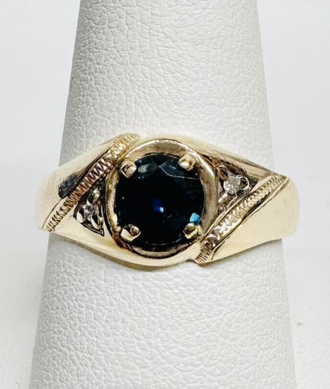 Vintage 10k Yellow Gold Round Blue Sapphire and Diamond Accents Band Ring