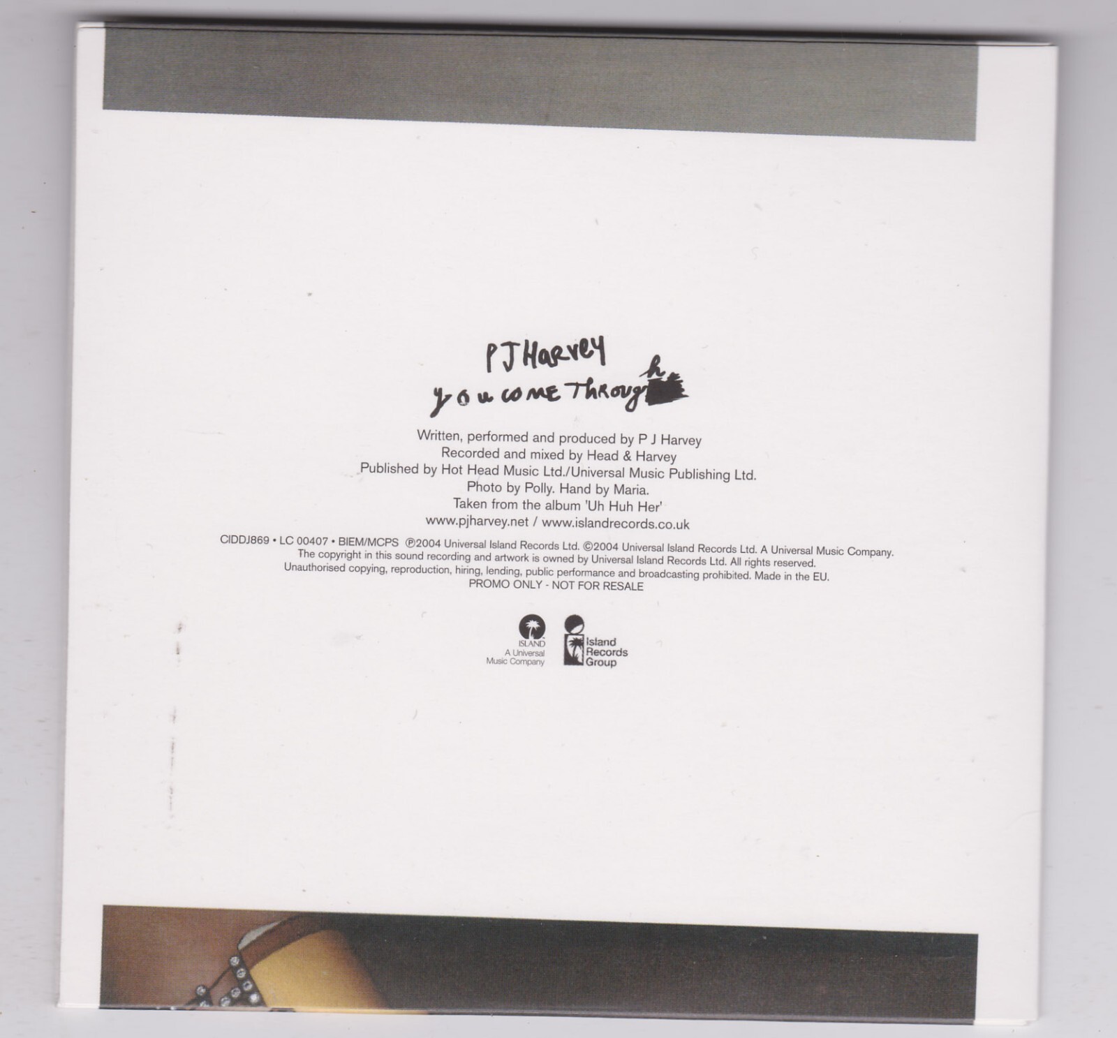 PJ Harvey You Come Through Promo 1-Track CD Single, Very Good Specs