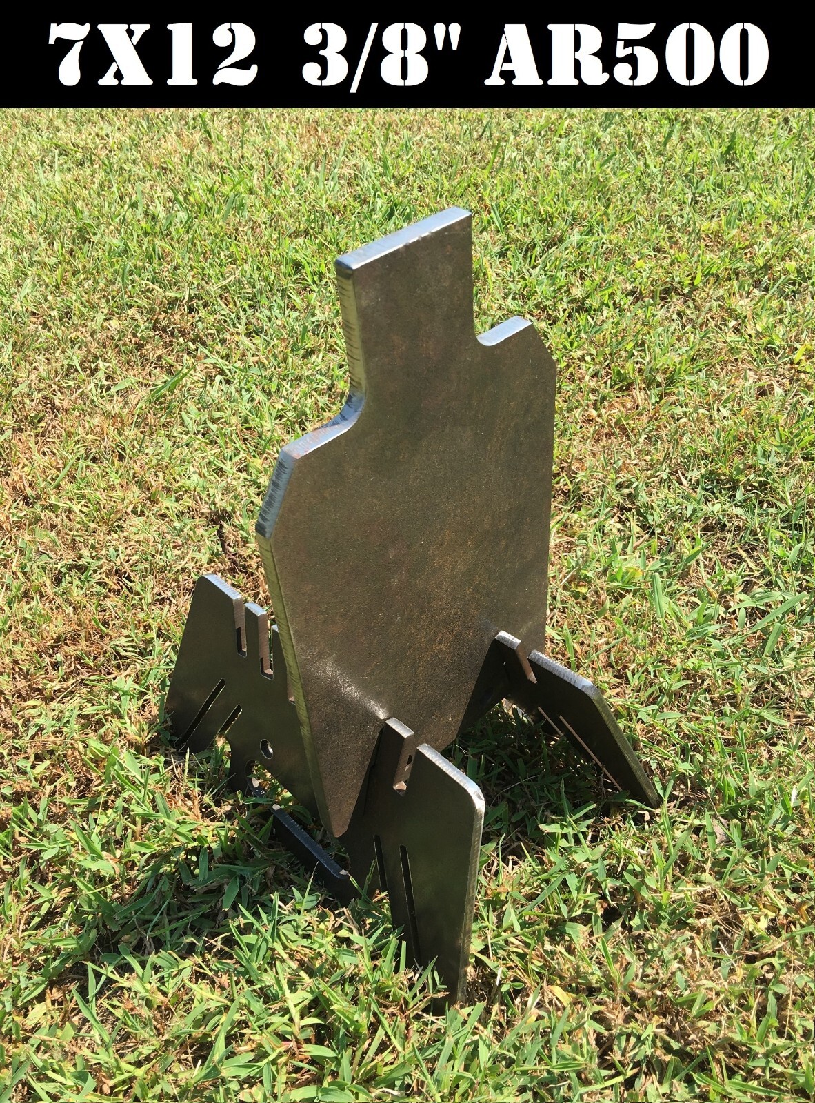 Manufactured by MAGNUM TARGETVisit our eBay for best prices and widest selection! 3/8" AR500 Hardened Steel Shooting Target 7x12 IDPA Ground Stand for ¾” Electric Metallic Tube (EMT) ConduitSet includes: (1) 3/8" 7x12 AR500 Shooting Target Body, (2) AR500 Ground Stand Legs, and (2) 3/8” bolts and nuts.For assembly, slide the body slots into the stand leg slots and you're ready to shoot.Choose preferred body angle when assembling, 0 (straight) or 15 (angled) degree. Use 15 degree angle for safer bullet deflection.Entire assembly can be placed on the ground or raised to your preferred height with 3/4” conduit commonly found at hardware/tractor supply stores.Conduit not included.When you're finished shooting, line up the body and stand holes, insert the bolts, tighten the nuts, and your target can be easily carried and stored away.WarningShooter and spectators must always wear proper eye and hearing protection.Recommended minimum distances from steel targets to shooter are 15 yards for pistols and 100 yards for rifles.If using non-frangible ammunition use handgun ammunition with a maximum velocity of 1500 feet per second. Rifle ammunition muzzle velocity should not exceed 3,000 feet per second.No shotgun slugs, steel birdshot and buckshot ammunition can be shot at steel targets.Never shoot hardened, steel core or armor piercing ammunition at any steel target.DisclaimerBuyer assumes all responsibility for the use and misuse of the targets purchased.