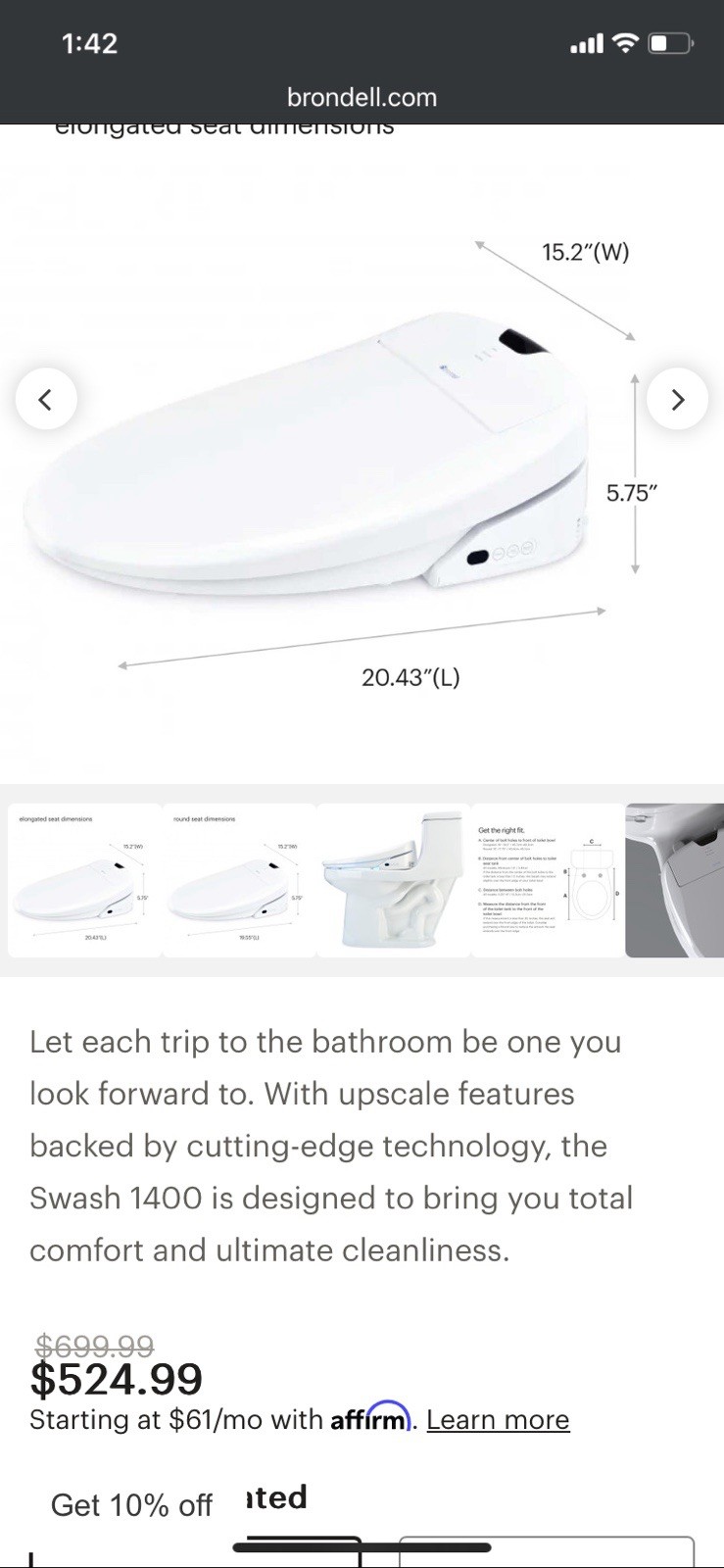| Model | Brondell Swash SE600 |