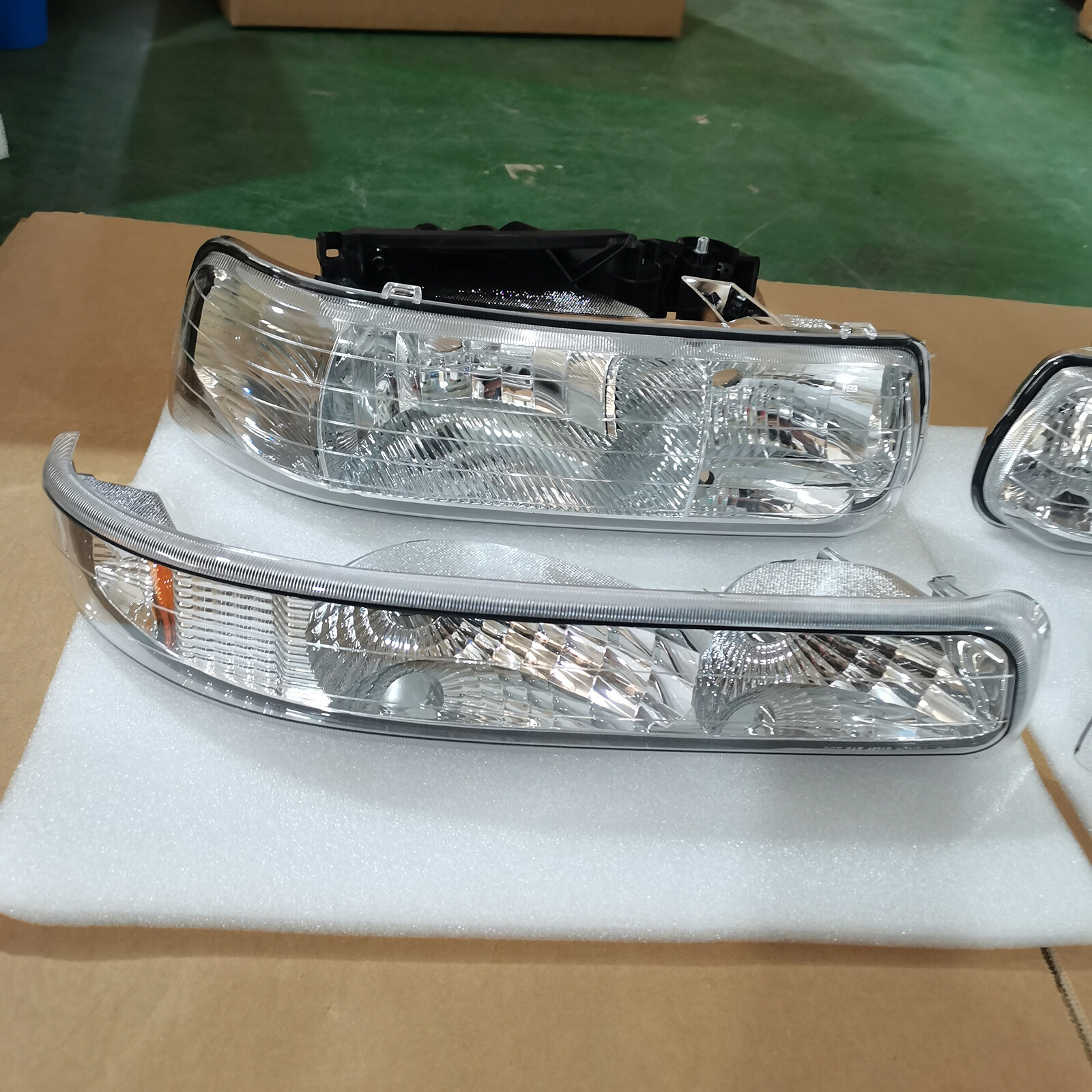 For 99-02 Chevy Silverado 00-06 Suburban Tahoe Chrome Amber Headlights Assembly