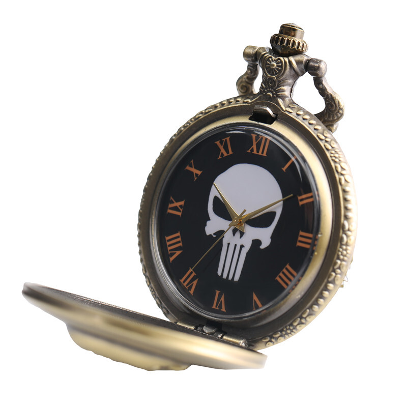 Product Description Steampunk Full Hunter 3D Skull Quartz Pocket Watch Roman Numerals Dial Kids Gift Description: PATTERN - Evil Skull Head in this mens pocket watch. QUARTZ MOVEMENT BRONZE COLOR- This pocket watch is kind of watch used on quartz movement in order to assuring the time exactly. SETTING TIME - Pull the part in the top of the pocket watch away from base of the watch and turn it clockwise until reaching the exact time. PRACTICAL – A chic alternative to a common necklace, our pocket watches for men and women can be wear elegantly in the neck as a necklace, fashionably and lovely. GREAT ANTIQUE GIFT - An exquisite pocket watch - gift for men, friends, parents, kids in some celebrate days and occasions, such as wedding day, birthday, or Christmas. Product Features: 100%