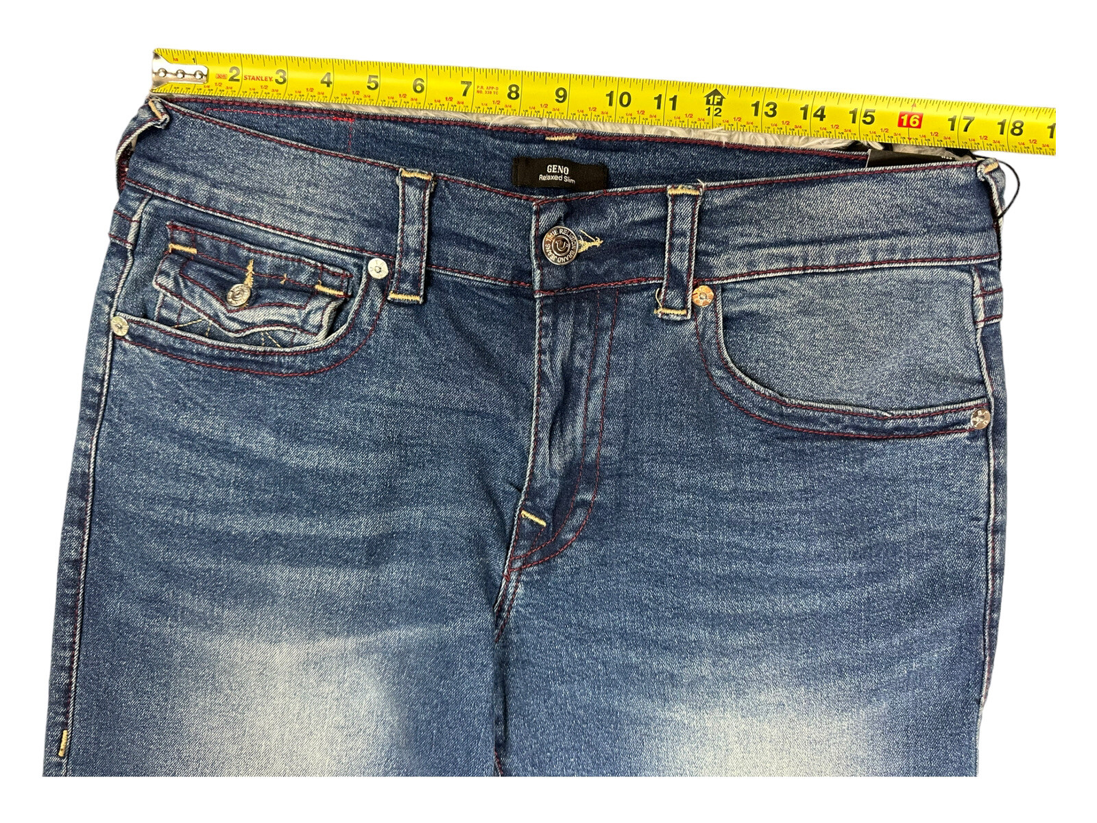 True Religion Geno SN Flap Relaxed Skinny Jeans Blue Denim 33x32 Specs