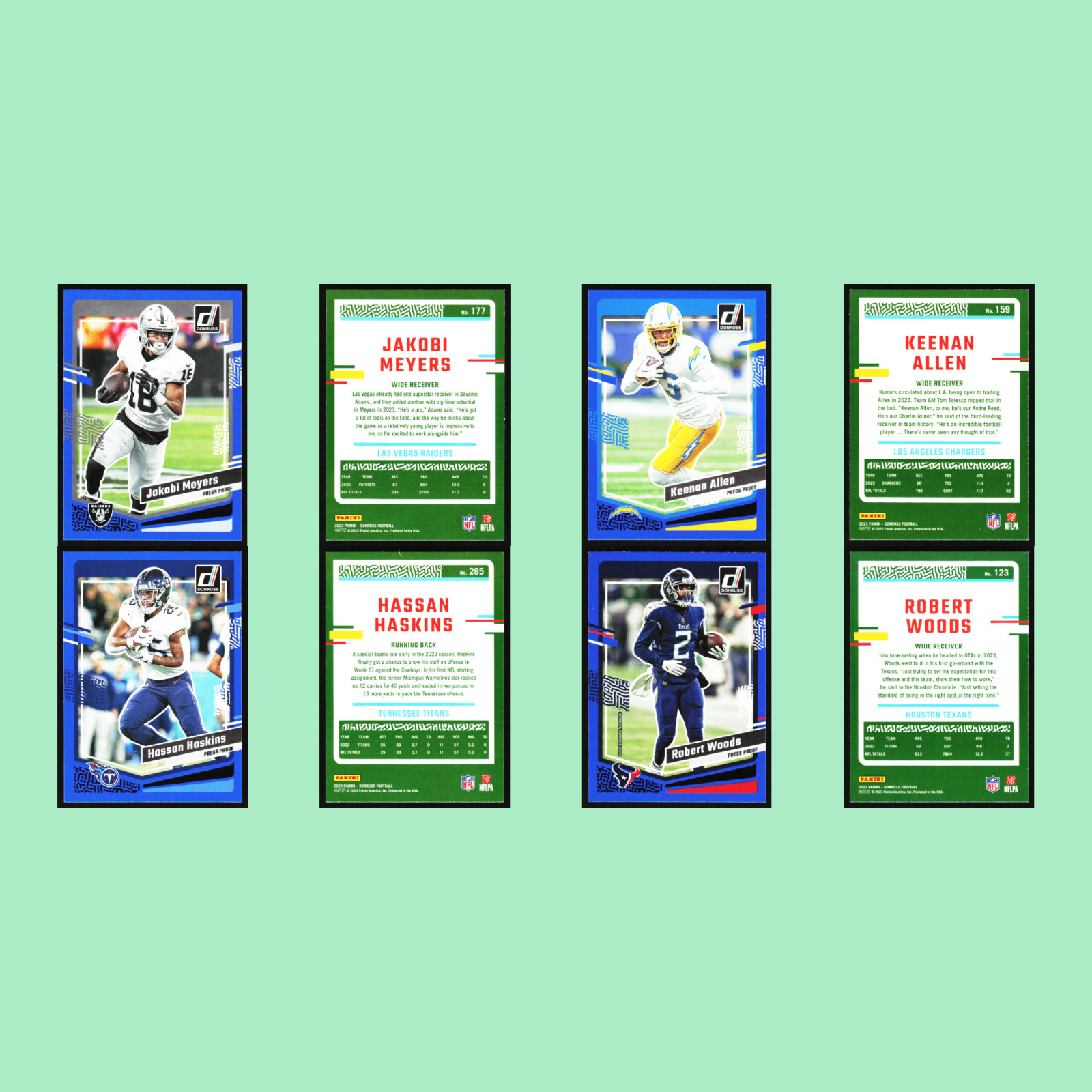 | Player/Athlete | Darius Slayton, Quez Watkins, Tyrann Mathieu, Juwan Johnson, Diontae Johnson, Jonathan Jones, Jamal Adams, Shaquil Barrett, Jakobi Meyers, Keenan Allen, Hassan Haskins, Robert Woods, Devin Singletary, Quay Walker, Kyle Pitts, Tanner McKee, Roquan Smith, Logan Wilson, Roschon Johnson, Marvin Jones Jr., Austin Ekeler, Shaquille Leonard, Garrett Wilson, Chris Olave |