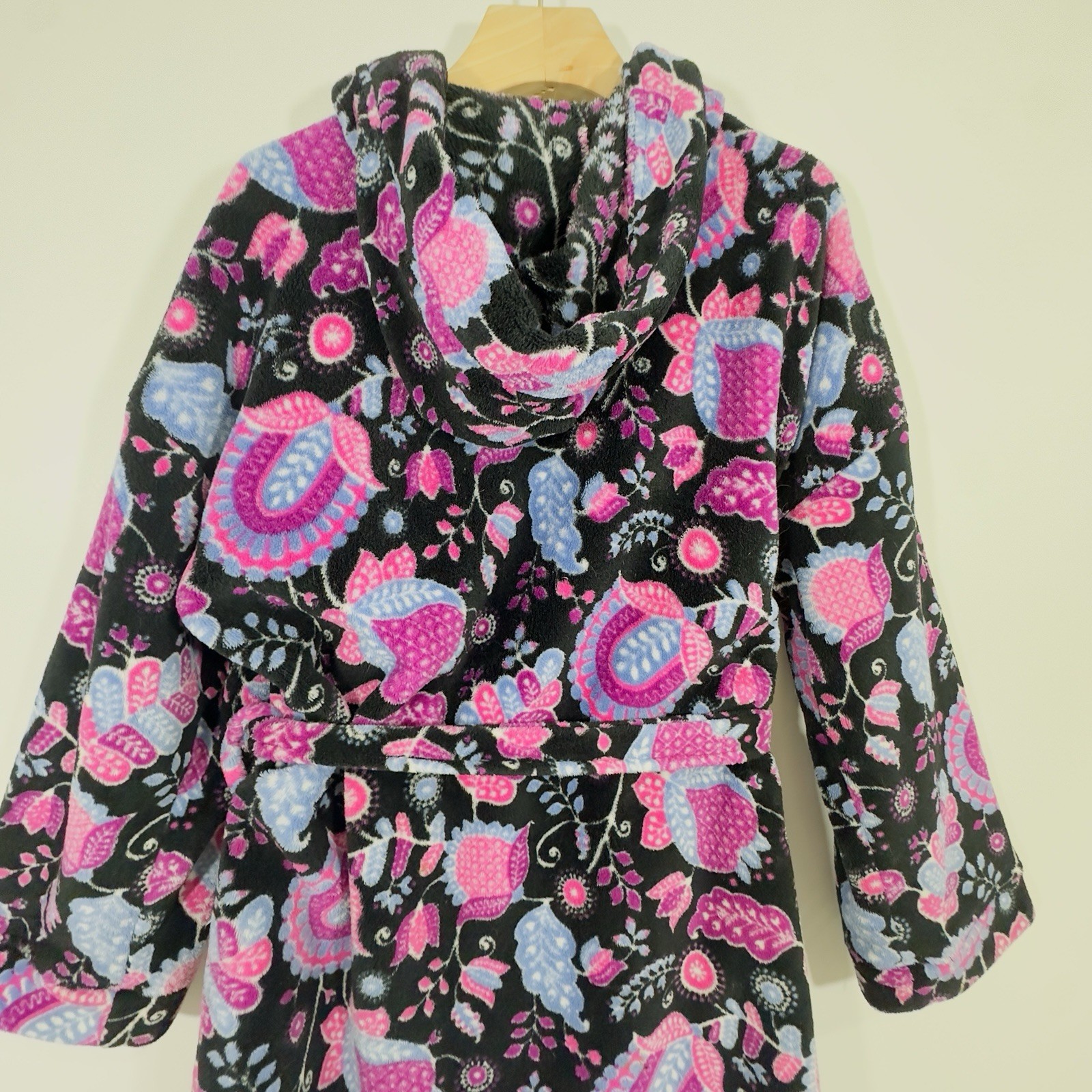 Vera Bradley Fleece Bathrobe Hooded Womens Alpine Floral Black Pink Purple S/M Specs