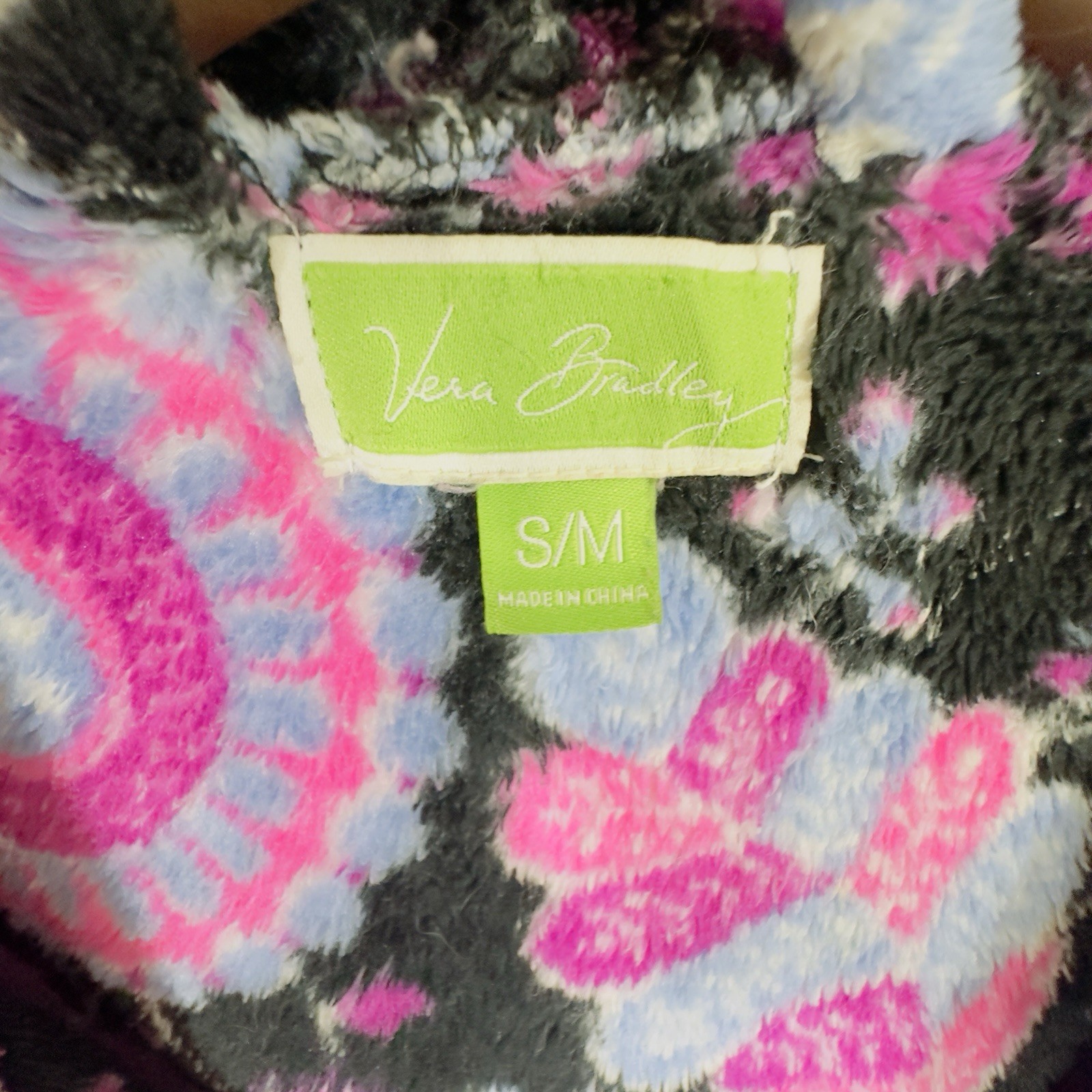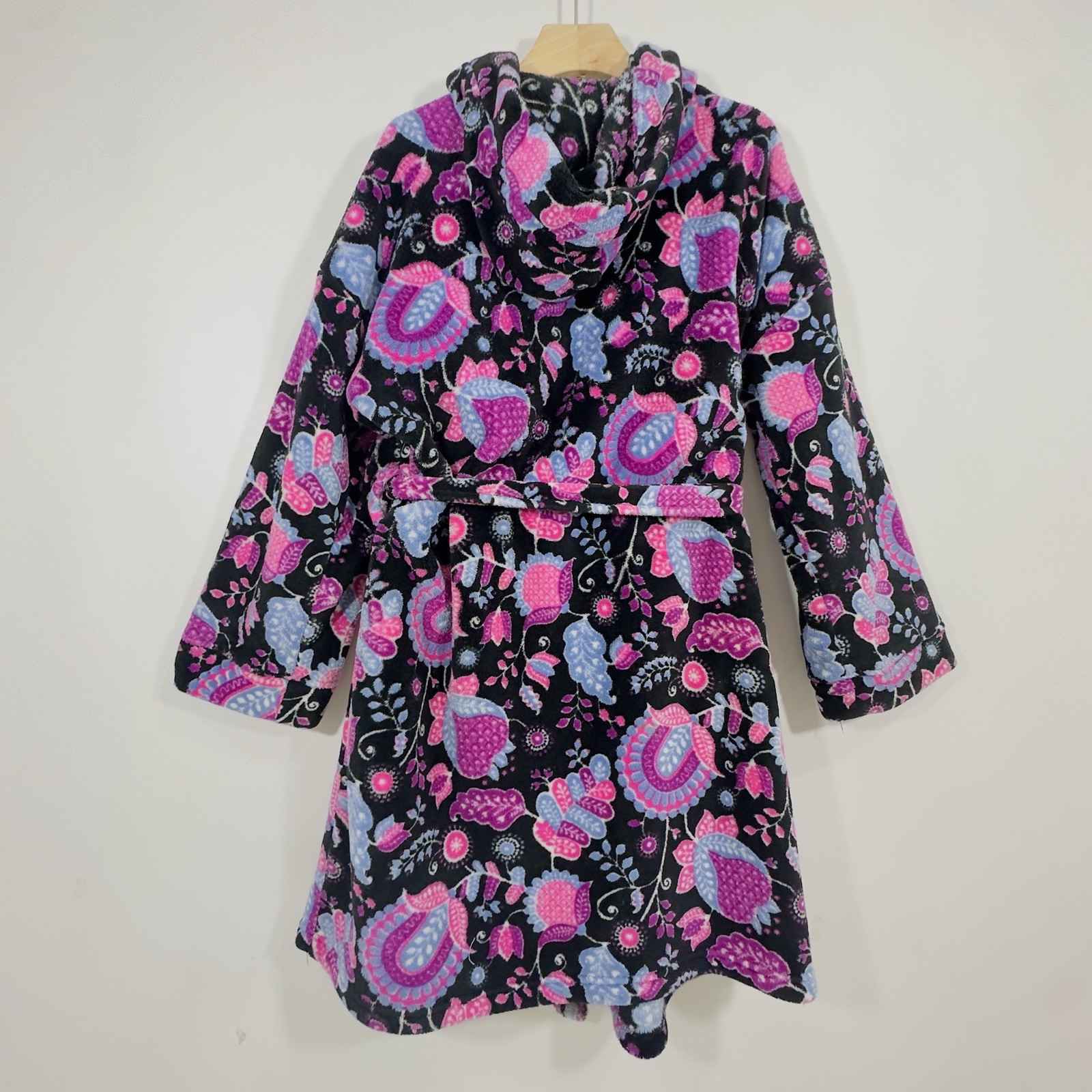 Vera Bradley Fleece Bathrobe Hooded Womens Alpine Floral Black Pink Purple S/M