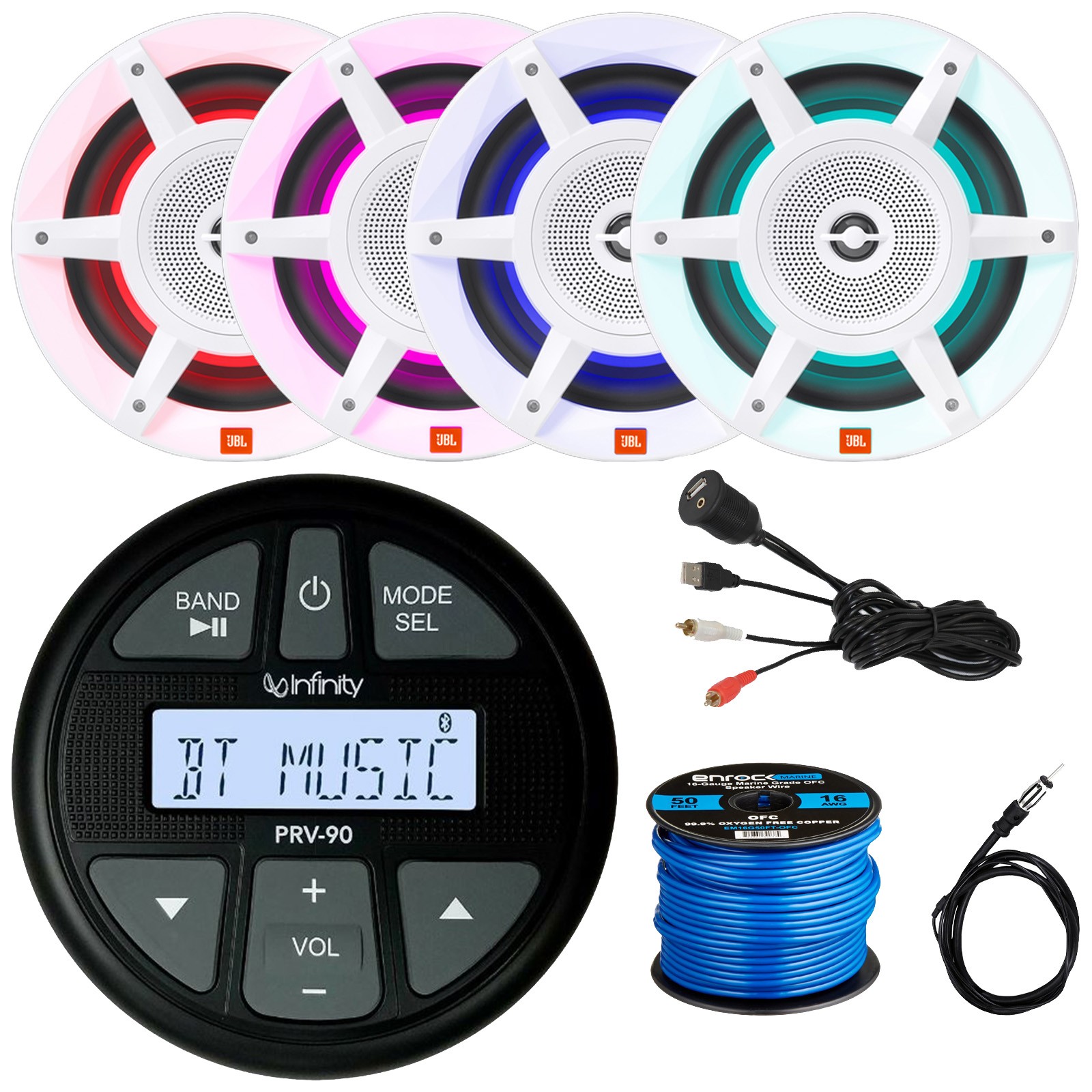 BayBoat: Infinity Radio Receiver, 4x 8" White Speakers, Adapter, Antenna, Wire