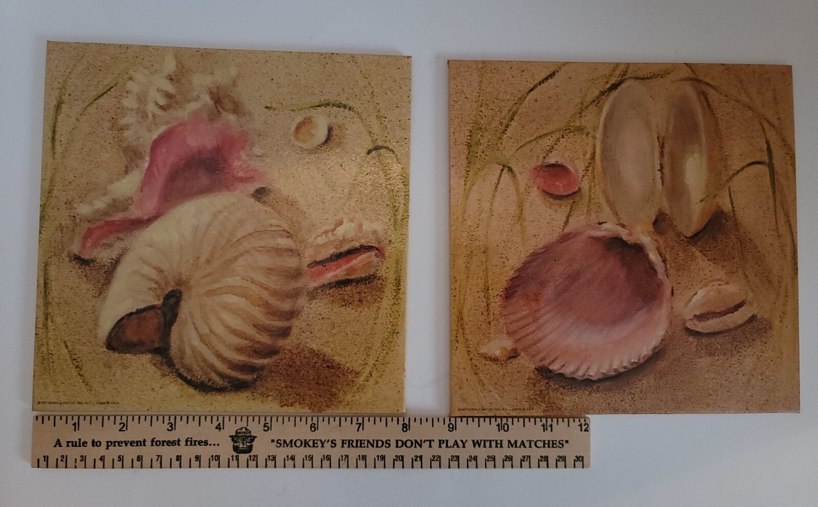 Donald Art Co Seashells Wall Art 1977 Lithograph 8"X8" Set of 2 Ready to Hang Specs