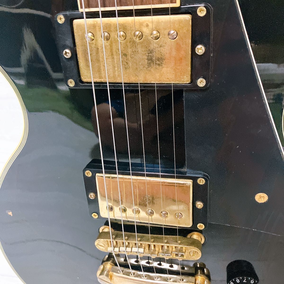 Busker'S Les Paul Custom Electric Guitar Black Gold Strings