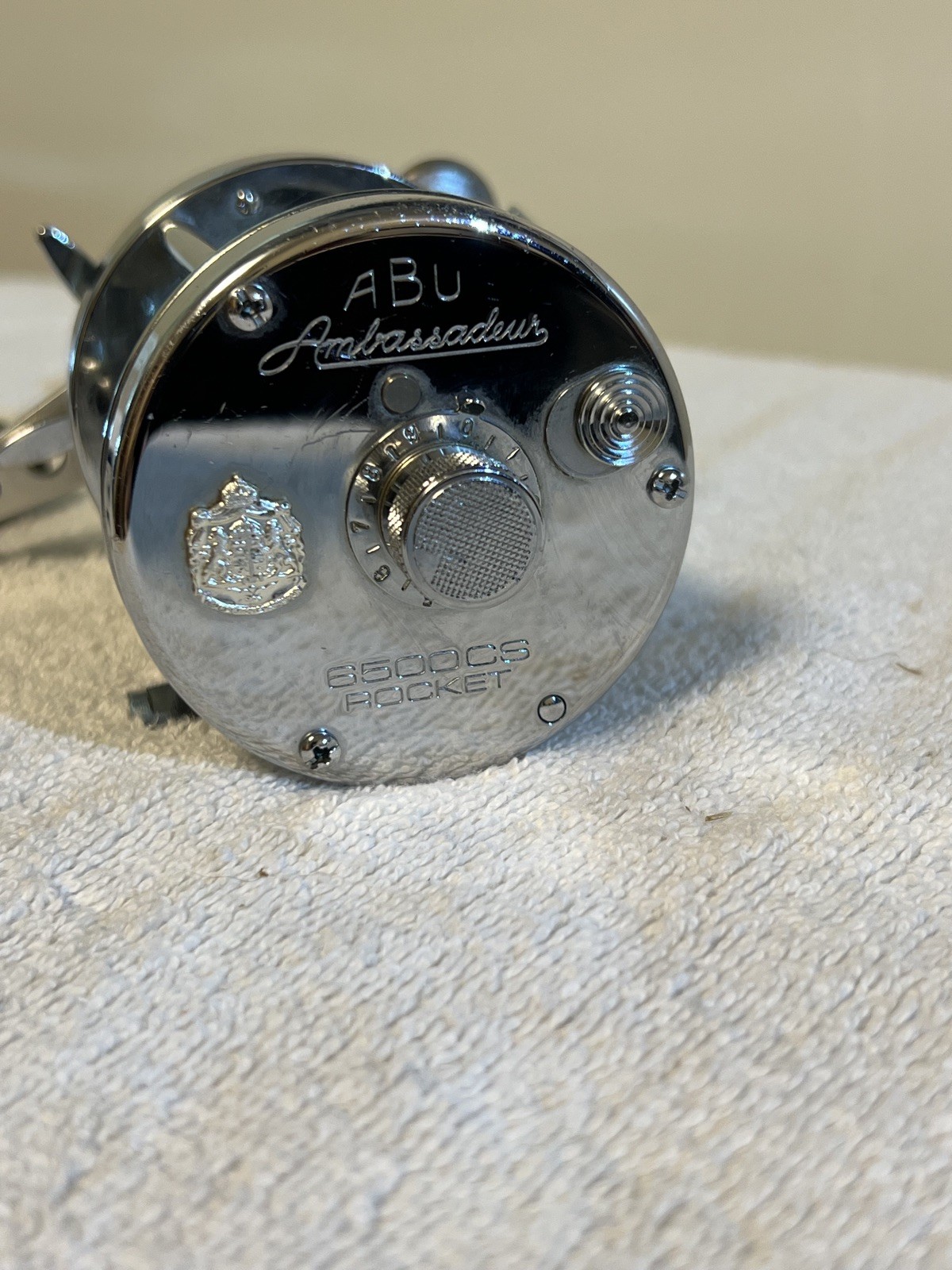 The Abu Ambassadeur 6500 CS Chrome Rocket baitcast reel, made in Sweden by Abu Garcia, is a high-quality fishing reel perfect for all saltwater fish species. With a right-hand retrieve, this reel is durable and reliable for a smooth fishing experience. The sleek chrome finish adds a touch of style to your fishing gear, making it both functional and aesthetically pleasing. Whether you're a seasoned angler or a beginner, this serviced Abu Ambassadeur 6500 CS Chrome Rocket reel is sure to impress with its performance and condition. This is the smoothest Abu Garcia reel that I have ever touched and everything works properly