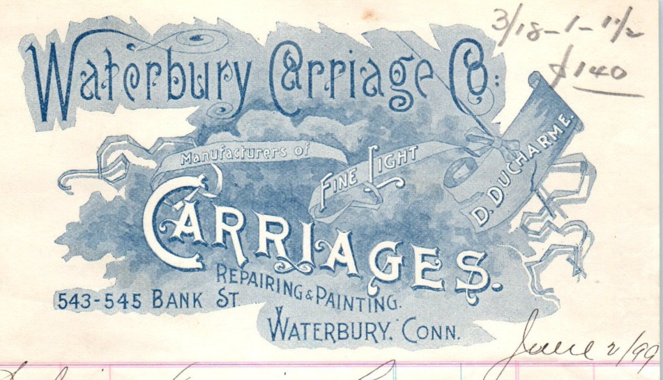 1899 Waterbury Connecticut Carriage Company Antique Letterhead Specs