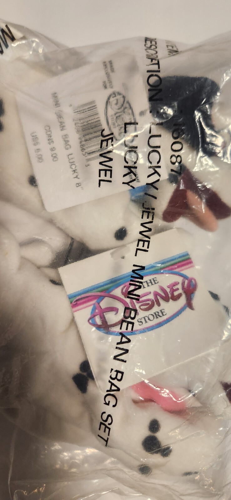 The Disney Store Lucky and Jewel Mini Bean Bag 8" 101 Dalmatians Still sealed! Specs