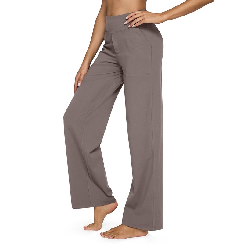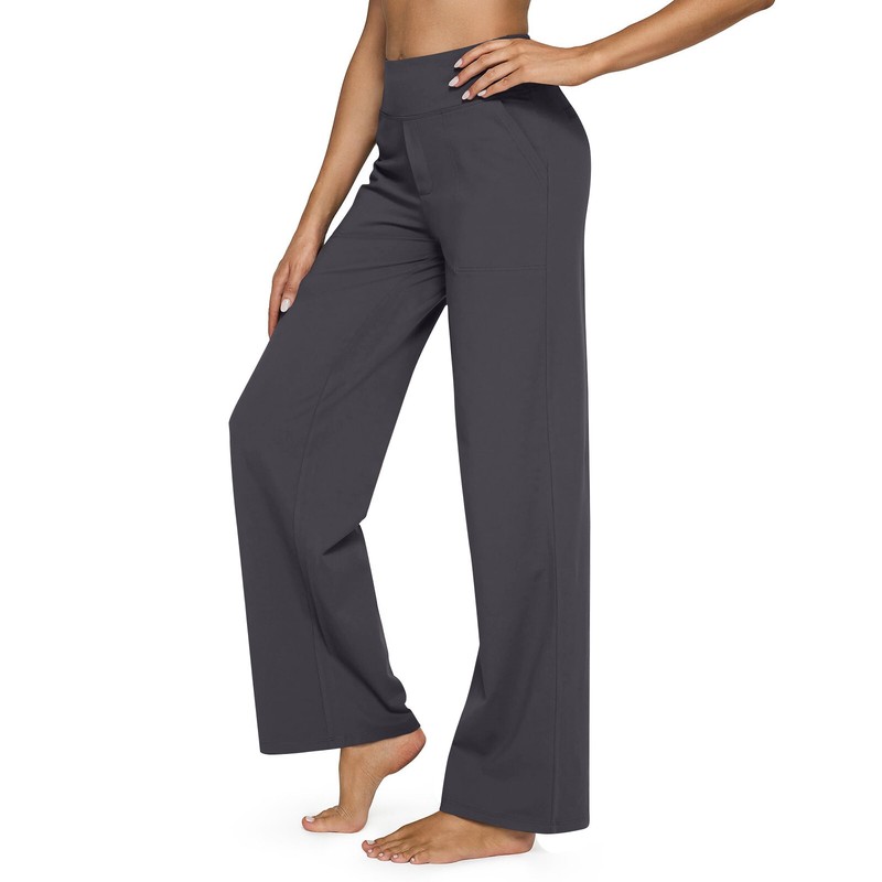 Womens High Waist Stretch Casual Yoga Pants Solid Color Wide Leg Pants Trousers