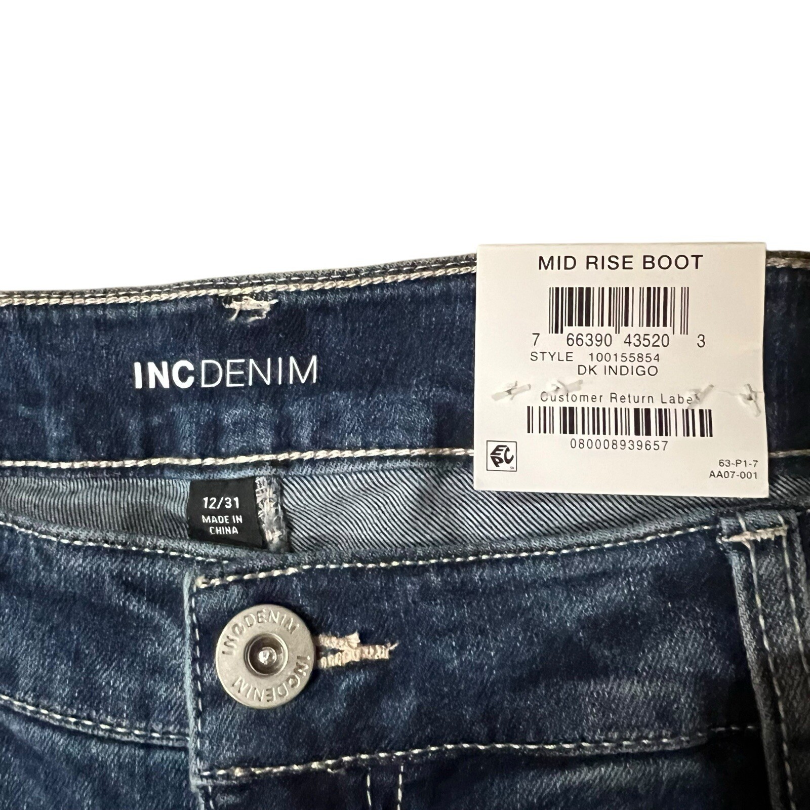 INC Denim Dark Indigo Mid Rise Core Denim Boot Cut Women’s Jeans 12/31 NWT