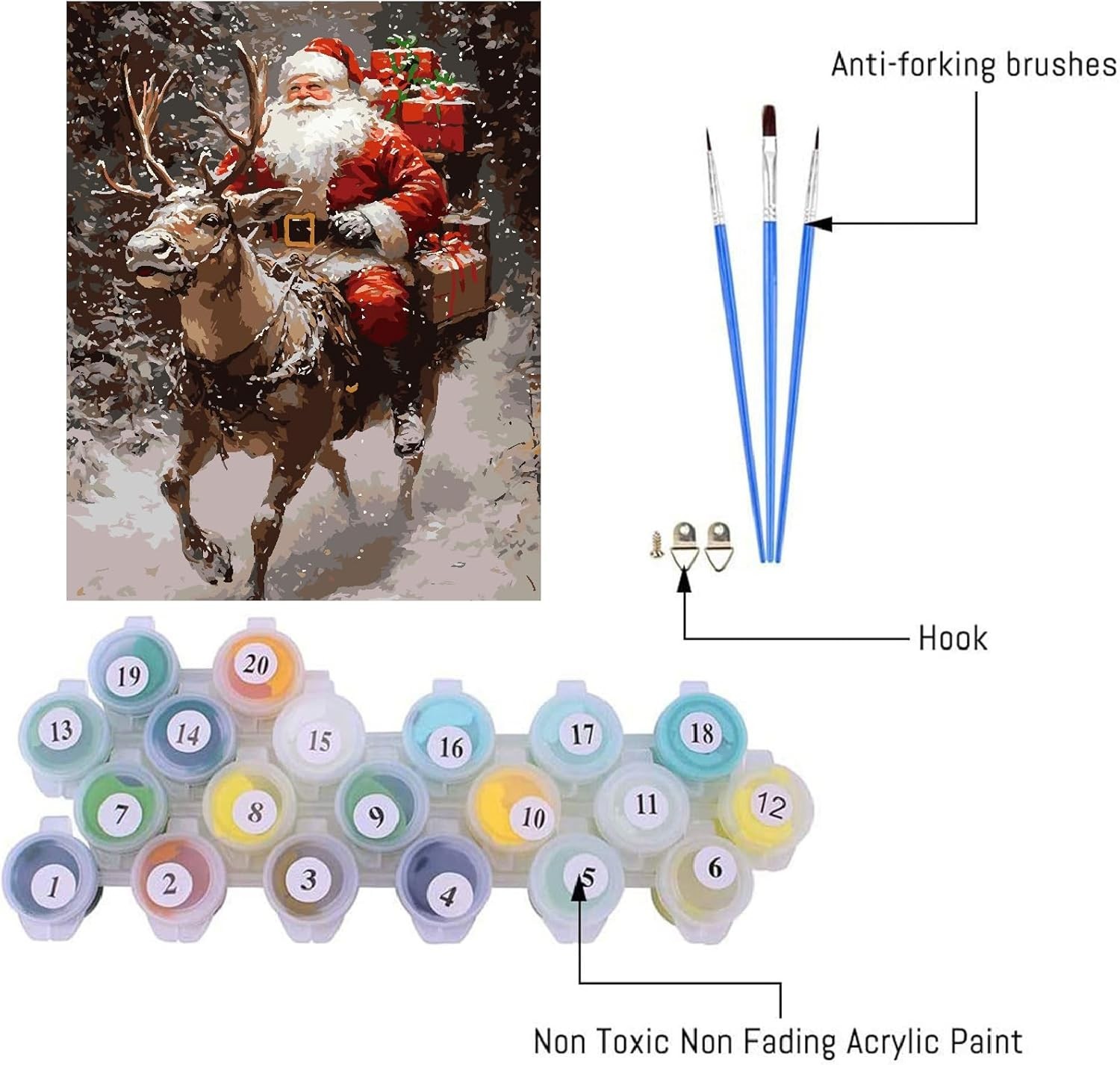 DIY Christmas Paint by Numbers Kit for Adults, Santa and Reindeer Adult'S Paint Specs