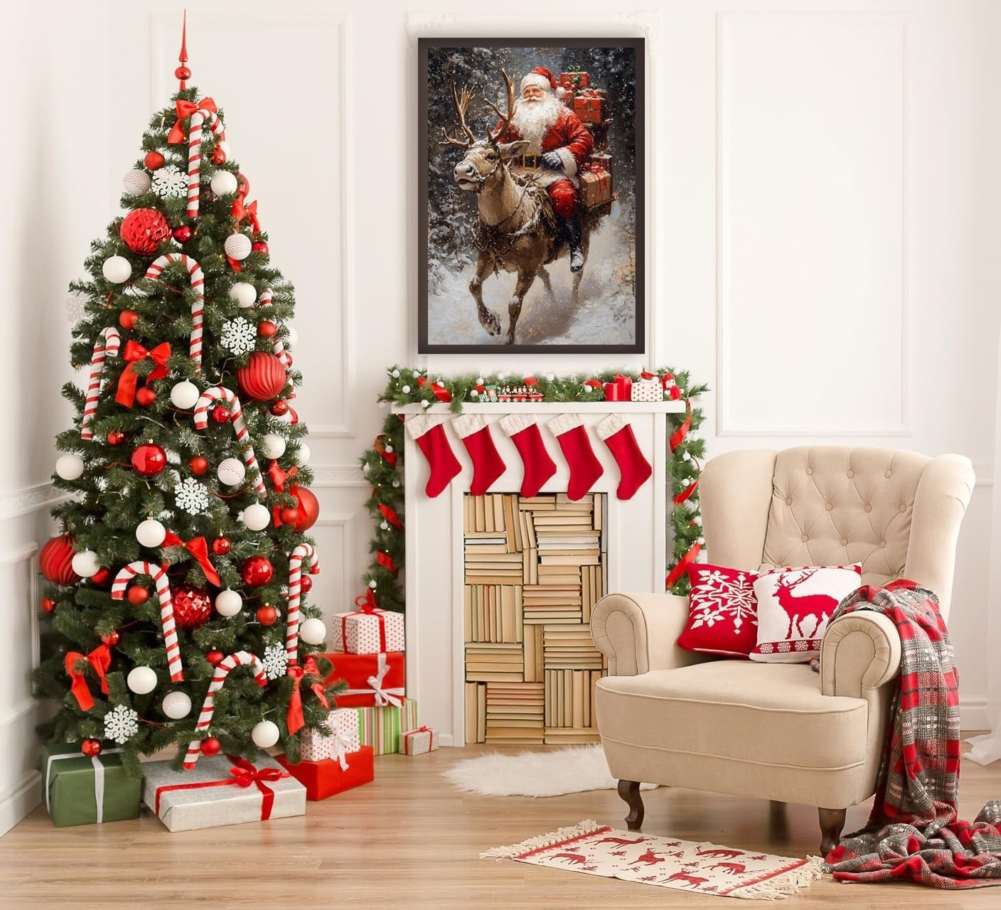 DIY Christmas Paint by Numbers Kit for Adults, Santa and Reindeer Adult'S Paint