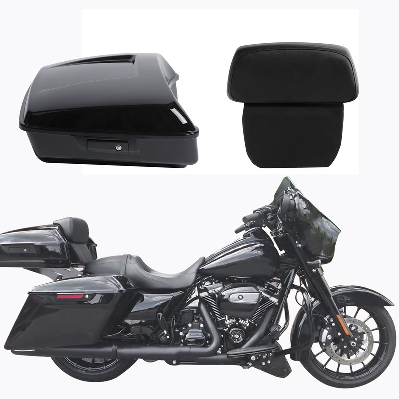 Brand New Trunk Material: High quality ABS plastic Backrest Material: Synthetic leather + PP plastic + Foam + Iron Latch Material: Zinc alloy Color: Black(Trunk has painted) Trunk Dimensions : 21.6" Long x 10.7" Deep x 25.9" Wide Please kindly note the free insert carpet liner just as a free gift without warranty. Note 1. Require re drill the holes on the base for install top luggage rack. 2. Require re drill the holes for install backrest (no pre). 3. Separate purchase of Detachable Two-Up & Solo mounting racks and applicable Docking hardware is required. Fitment Fits For Harley-Davidson Touring 2014-later Harley Road King FLHR 2014-2023 Harley CVO Road King FLHRSE6 2014 Harley Street Glide FLHX 2014-2023 Harley Street Glide Special FLHXS 2014-2023 Harley CVO Street Glide FLHXSE 2015-2023 Harley Road Glide FLTRX 2015-2023 Harley Road Glide Special FLTRXS 2015-2023 Package Included 1 x Pack Trunk W/ Black Latch 1 x Backrest Note: 1.Please check the parts' appearance, size, shape, compatibility, and ensure this part will fit for your vehicle before purchase. 2.If you could not ensure ,Please feel free to contact us and offer us your old parts' pictures. we will help you get the correct part. 3.Professional installation is highly recommended. International Buyers – Please Note Import duties, taxes and charges are not included in the item price or shipping charges. These charges are the buyer's responsibility. Please check with your country's customs office to determine what these additional costs will be prior to bidding/buying. Attention: When you receive item damaged,Defective,not as describe or wrong one, please email us pictures within 72 hours to resolve any problem better and fater: 1.All labels with clear words on the package; 2.The real goods you receive; 3.Different angles of the products and package to show the problem clearly. USA shipping: Our warehouses are in Rancho Cucamonga, California and Harrisburg ,Pennsylvania, United States. Items will be sent via USPS or Fedex, Delivery Time is 2-7 Business Days. Returns: In case the item is defective, please inform us within 30 days of receipt, we will arrange reship or refund. Buyers have to pay for the return cost and we will pay the cost for resend. If you are unsatisfied with our item or service, please contact us before leaving any feedback. We are committed to resolve all issues in a friendly and satisfactory manner. We always reply to messages within 2 business days (off-duty at weekend). If you do not get a response from us, then please check your junk or spam mailbox. Features Aftermarket 100%