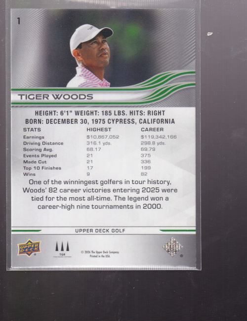 | A2421- 2026 Upper Deck Golf Card #s 1-100 -You Pic | #1 Tiger Woods - NM-MT |