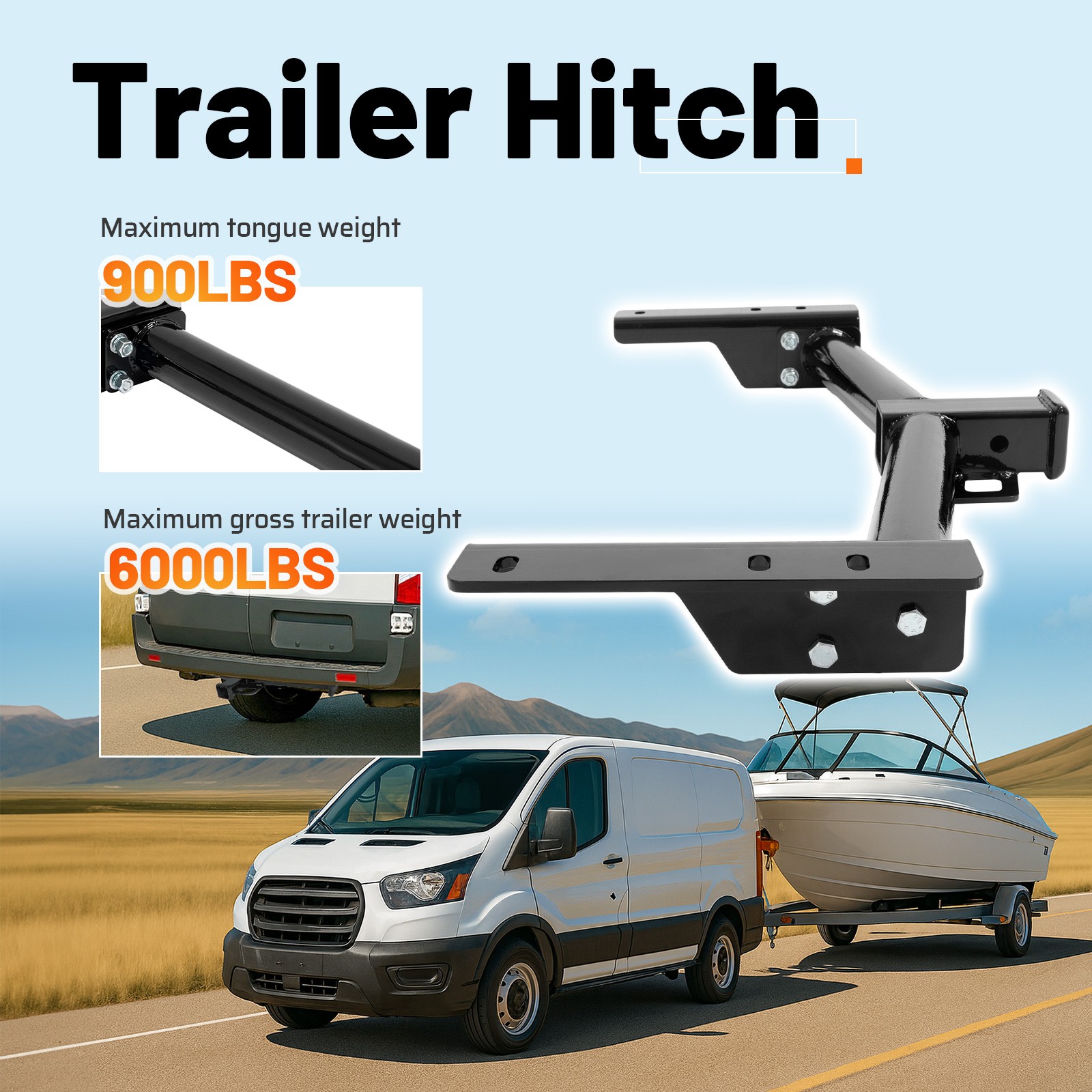 accessories, and can be used to transport items during wild camping and travel, greatly improving the convenience of transportation. High Quality Class 3 Trailer HitchRated for up to 6,000 lbs tow weight capacity and 900 lbs tongue weight capacity, or up to 8,000 lbs weight distribution capacity and 900 lbs weight distribution tongue weight when used with a weight distribution system. Package Includes: 1 X Trailer Hitch Mounting Hardware Included Assembly Instructions Included Bumper Rack Stand Spare Tire Carrier Roof Rack Cross Bar Side Rail Cross Bar Side Rail Cross Bar+Side Rail Accessories Roof Rack Cargo Carrier Roof Rack Cargo Carrier Roof Rack Cargo Basket Ladder Roof Racks Other Truck Bed Tools Tonneau Cover Truck Bed Ladder Rack Other Gooseneck Trailer Hitch Engine Stand Roll Bar Cargo Carrier Hitch Mount Step Bar Paint Stand Jack Stand Trailer Hitch Tools Trailer Hitch Hitch Mount Rack Tow Hook Other Vehicle Appearance Parts Molding Trim Roof Sun Visor Wiper Cowl Gas Cap Tailgate Tailgate Molding Outer Pillar Molding Soft Top Front Spoiler Rear Spoiler Rocker Panel License Plate Bracket Door Panel Door Hinge Door Handle Hood Vent Door Armrest Fender Truck Bed Side Rail Cover Side Step Window Glass Cab Corner Window Louver Other Other