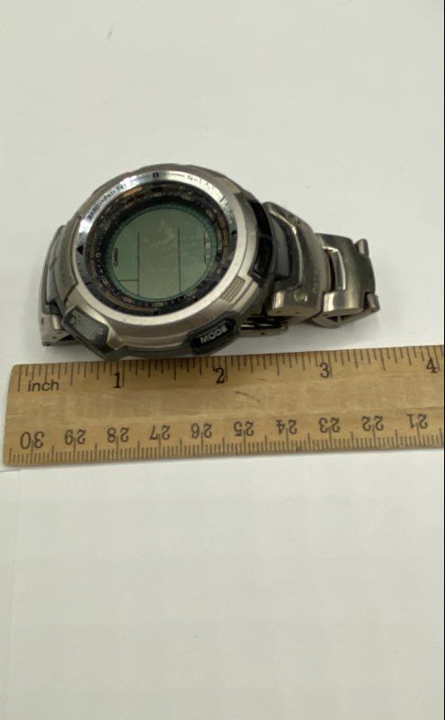 Brand: CasioModel Name: PAW-1300T Pathfinder Tough Solar Material: Stainless Steel Condition: Fair - shows signs of wear Functionality: Watch is not running, may need new battery. Battery is not included.Movement: Quartz Band Material: Stainless Steel Details: 7" in length, needs batteryLocal Pick up: We offer local pick up by appointment only. Please message us when you have paid for your order so that we can send you the link to book your appointment. Please note that we require an appointment for each order. We do not offer same day pick up, and require 2 business days notice so that we can ensure that your order is ready for you. For more information, please send us a message! We currently charge a $1.99/item handling fee on all pick up items. Thank you for shopping Goodwill Southern California and for supporting our mission to provide jobs for individuals with disabilities and disadvantages. Your purchases help create jobs, hopes, and futures.