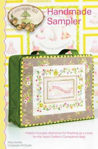 Handmade Sampler NIP SKU295 MSRP: $10.00 Little snippets of beautiful stitches form a garland around the edges of this sampler. The pattern includes directions to make a decorative front for a Yazzii brand Crafters Companion bag, but you could frame this or put it on the front of a tote and it would be just as pretty! This was designed as a class project and uses 12 embroidery stitches, along with a tiny bit of crayon tinting! Embroidered image is 8 1/2” x 6 1/2”