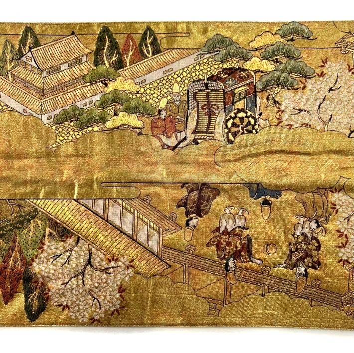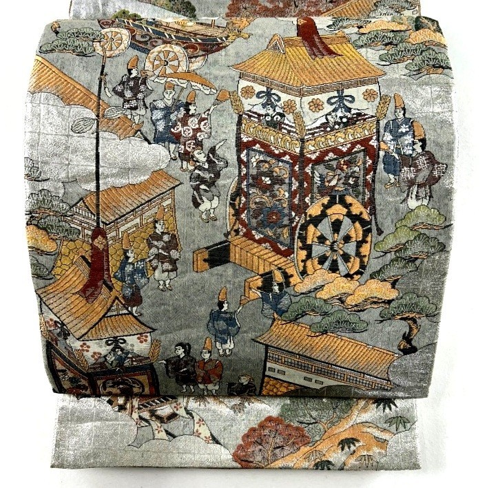 ★Discounted prices are available for orders of two or more items. ☆The most magnificent obi in Japan had only one purpose: to tie a kimono Today, however, people everywhere are discovering the almost unlimited decorative potential of the obi. You can add the flair of your personality to just about anything in the home... For instance, elegant table runners and wall hangings, ......When weaving obi, 4800 threads are used, with threads in many colors( to make patterns and raised embroidery), a woven through the threadsJapanese Kimono SILK「FUKUROOBI」Reversible,14'2"(432 cm)It fits "Tomesode", "Furisode", "Houmongi" very well*Fukuro Obi is a "double-woven Obi." Otaiko represents a main pattern that is centered.Thread materialSilk 100%(except gold/silver/metallic threads)SizeL 14'2" x W 11.8" (432 x 30 cm)PatternHeian festival in KYOTOGold thread, Foil, Producer's StampGround colorGold and SilverConditionExcellent, the obi shows some use, no noticeable blemishes, except for slight wrinkles, which are a result of wear.Weight1194 g TATOU-SHIThis folding paper case is a traditional Japanese style for KIMONO, OBIsThis paper is called MINO-WASHI.We will ship it in this case. . Please NoteDetails and Colors★Details and colors of the images might differ slightly from those of actual products, due to the light or vary depending on your computer's monitor settings. International Buyers★ Import duties, taxes, and charges are not included in the item price or shipping charges. These charges are the buyer's responsibility. Please determine these additional costs before bidding/buying with your country's customs office.Return policy★Returns are accepted ONLY if the item was not described★All returns must be in original condition