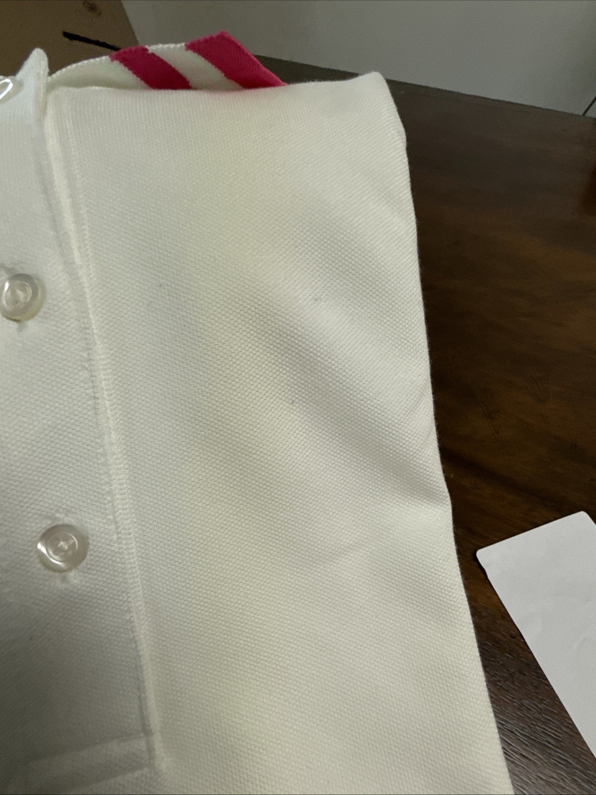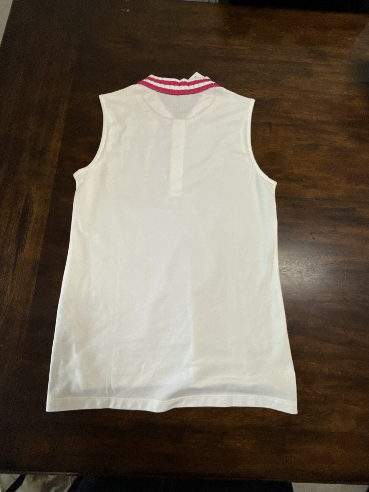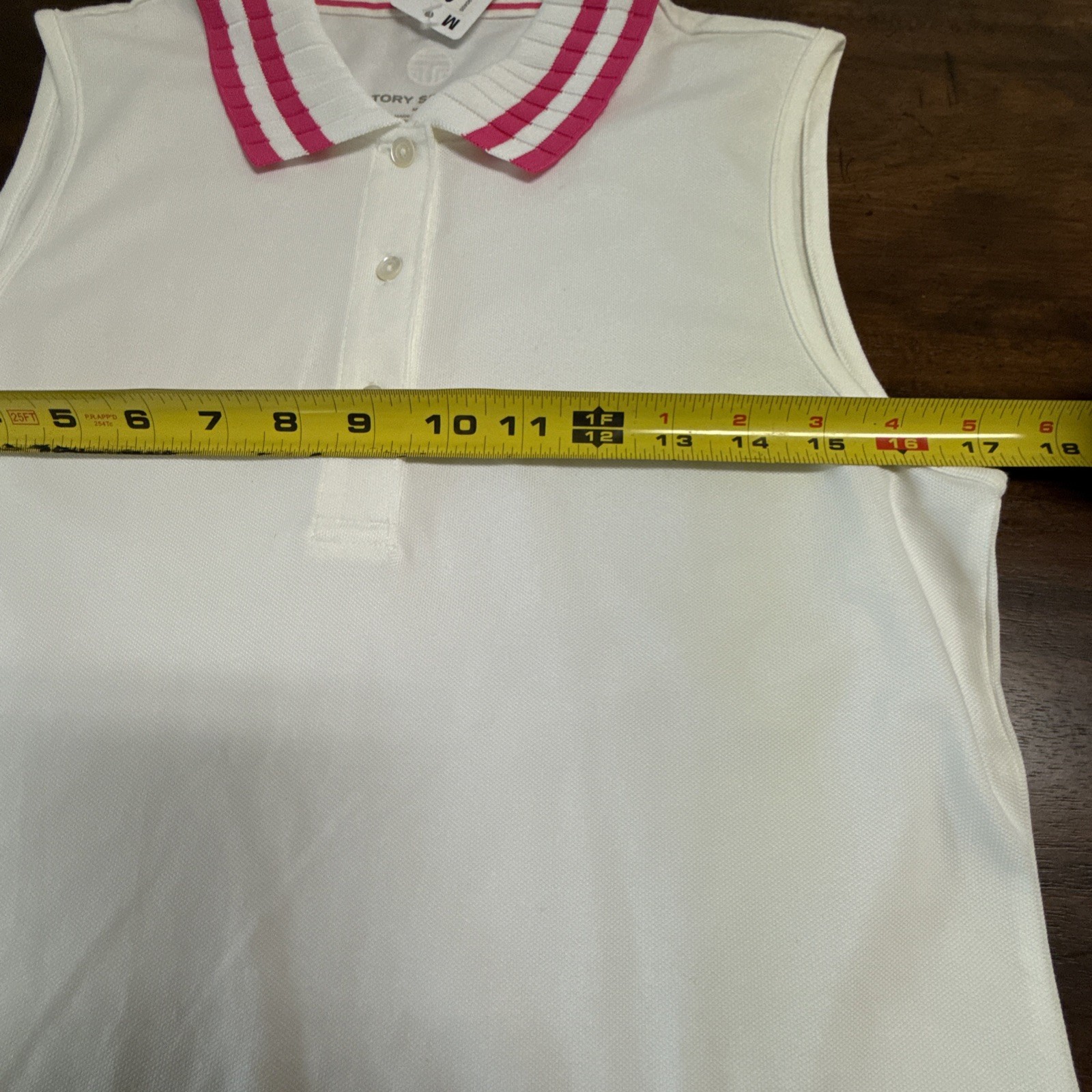 TORY SPORT PERFORMANCE SLEEVELESS POLO SIZE M WHITE PINK COTTON NWTVery small light spots on front, possibly will wash out. Please see photos