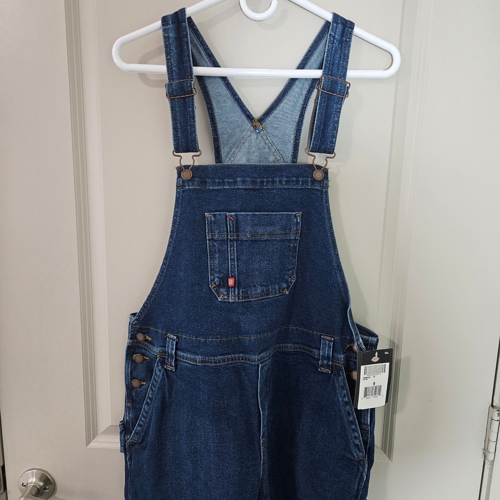 NEW Dickies Women Boyfriend Bib Overalls Dark Wash Denim Stretch Size M NWT
