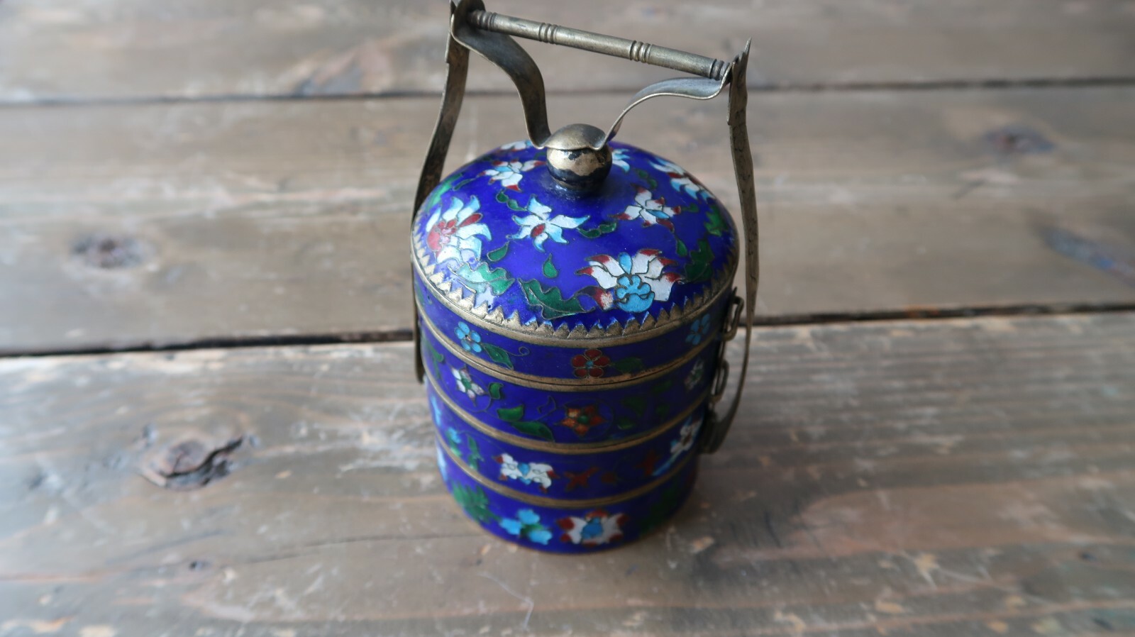 Antique Chinese Cloisonne Stacked Jars 4 in - Spice Tea Opium Set
