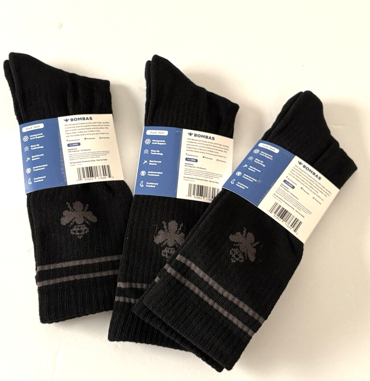 Bombas Men’s 3-Pack Calf Sock Tech Black Honeycomb Size XL. New with tags, ships quickly. See