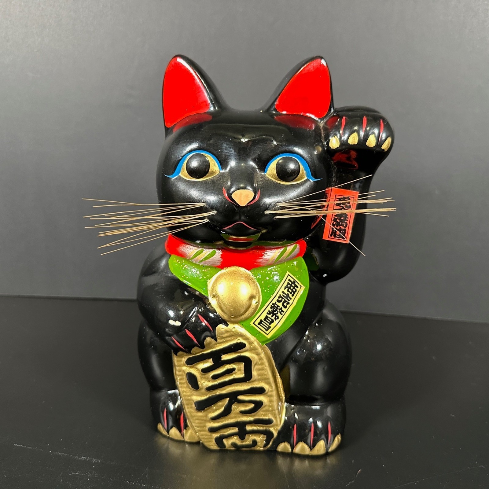 This vintage Japanese Tokoname Maneki Neko ceramic coin bank features a black beckoning cat design and is listed in very good, pre-owned condition. Please review the photos and the full item description for details on markings, size, and any signs of wear, as specifics are not provided here. Ideal for collectibles displays or as a functional coin bank, it’s a classic piece of Japanese lucky cat decor. Free shipping is included with the purchase; check the listing for shipping method, handling time, and any applicable delivery notes.