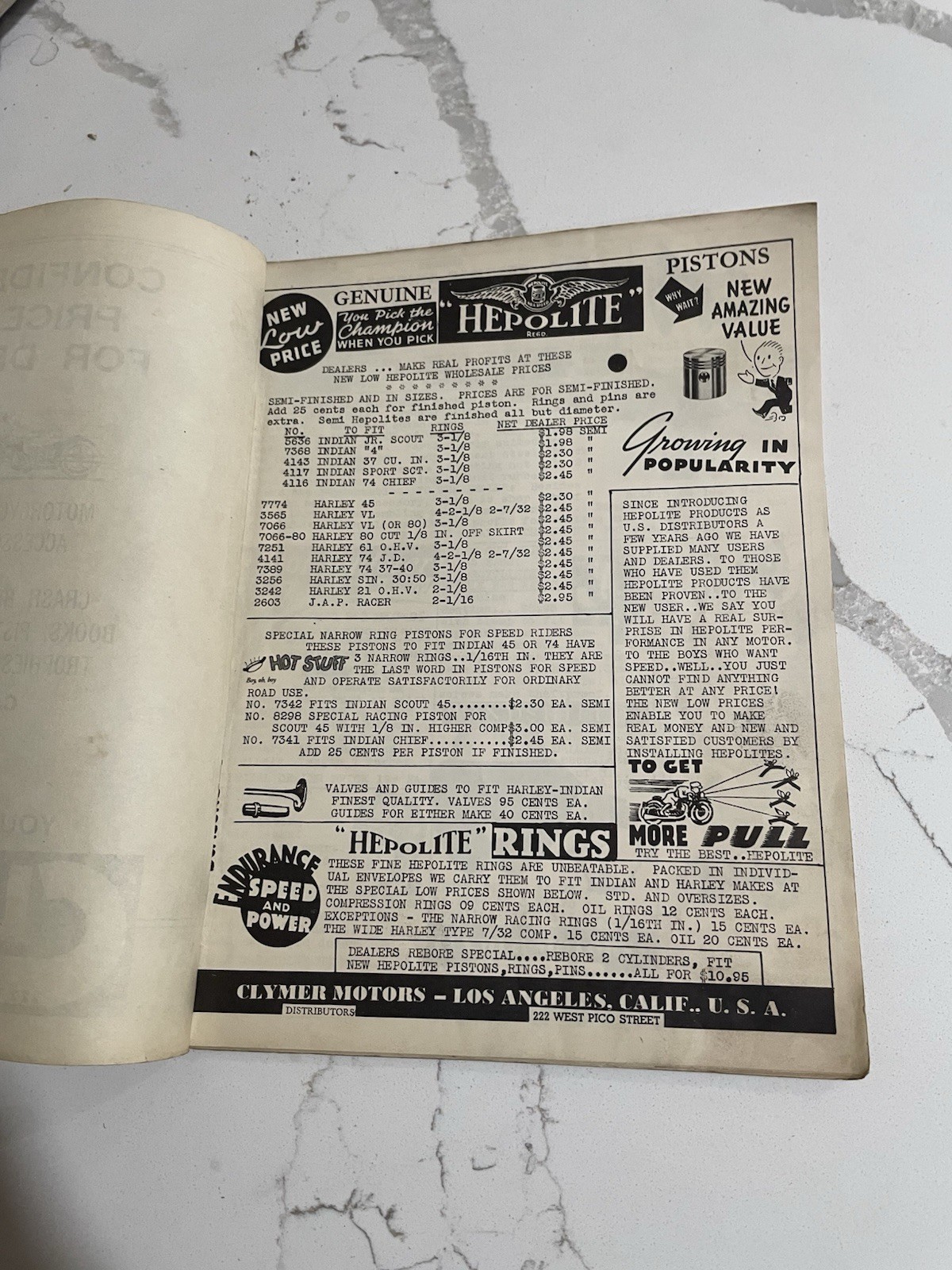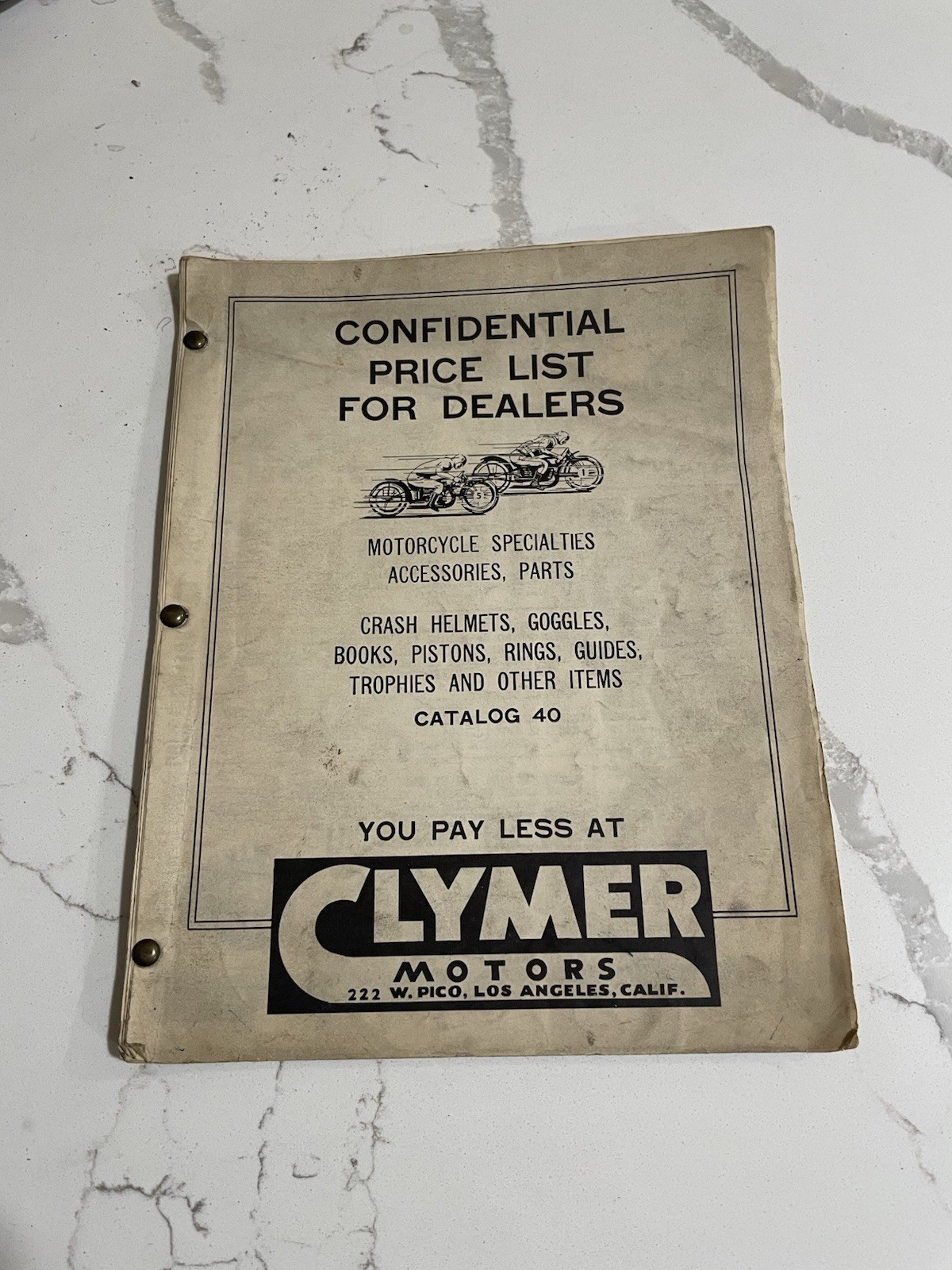 Vtg Clymer Motorcycle Parts Catalog Los Angeles California 1930s 40s Rare!
