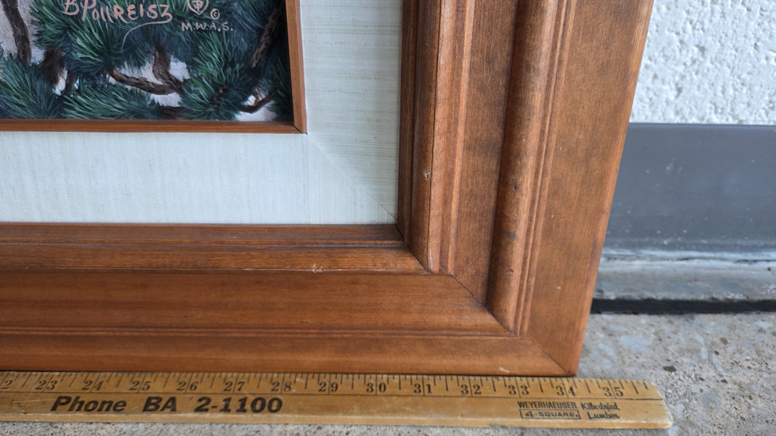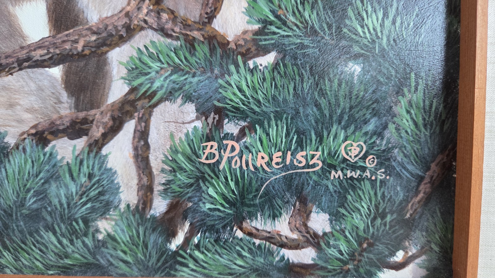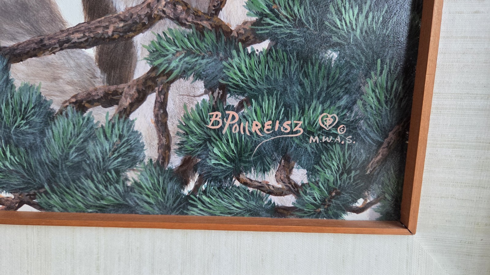 FRESH FROM A SOUTHWEST MISSOURI ESTATE.BRENDA POLLREISZ ORIGINAL OIL PAINTING " GRAY SILENCE" WOLVES LARGE Rare and beautiful original painting by Brenda Pollreisz (April 18,1958 – February 24, 2019). This is an original framed piece called “GRAY SILENCE ” signed by the artist A realistic painting that depicts A GROUP OF WOLVES This is substantial piece that will be carefully wrapped and shipped to buyer.Item’s approx. measurements:With Frame:” high and” wide. Specialty frame is about wide from the wall. Actual artwork measures approximately ” x ”.This piece is gorgeous and is framed in a wood frame. Item is in remarkable condition with minor little scratches in the frame. I tried to accurately capture the frame in the pictures. The pictures don’t do this painting justice. Her pieces are signed as “B Pollreisz”. This is a beautiful piece and perfect for someone that loves this style of original art for their décor. While I have no direct knowledge of all her work – this seems to be a one of a kind. There are FEW original pieces for sale Pollresiz was an award-winning wildlife painter popular in the Midwest. She was known for her realistic style with attention to detail, texture, and animal behavior using various mediums – but mostly acrylics. Since her death, her website is no longer active. Her profile on Etsy is still active and states:“I have enjoyed over 25 years of award winning fine art painting experience with main subject interests in Northwestern and Southwestern Wildlife, Scenery and Sporting Art. My paintings have won numerous 1st Place, Purchase, People's Choice, Director's Choice, Sponsor, Best of Show and many other awards in art shows attended in the United States and are included in homes and businesses across the United States, Canada and Internationally.Though I have no formal training I have to thank God for not only gifting me with the desire to paint but also putting some absolutely awesome professional painters in my path over the years who have shared their knowledge with me. My mentor is Western Artist Bob Tommey who took me under his wing when I was still very young and literally did everything he could to correct any of my bad painting habits. Bob is known as a `teacher of teachers' and I still tell him to this day that he is the reason I paint with the success I have!” THIS WAS ORIGINALLY PURCHASED FROM THE ARTIST. VERY NICE CONDITION, WOULD BE GLAD TO ANSWER ANY QUESTIONS ABOUT CONDITION, SHIPPING,POSSIBLE DELIVERY ETC.. 417 830 8720