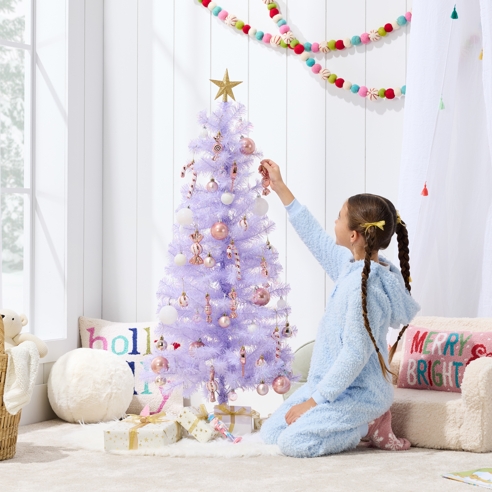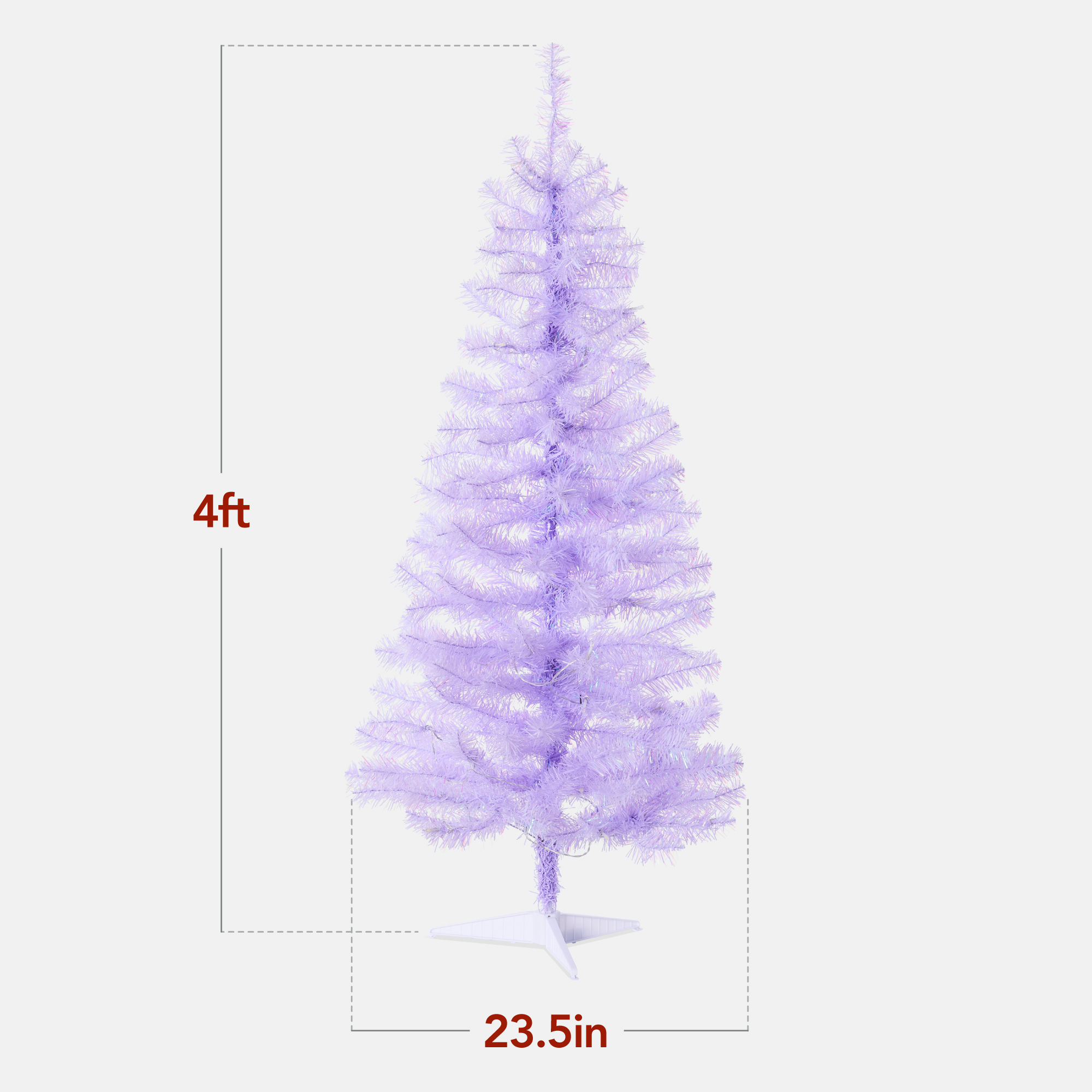 Product Details PERFECT FOR SMALL SPACES: Our compact 4ft tree is the perfect addition to any kid's bedroom or apartment, spreading festive cheer throughout your home or office BATTERY-POWERED TWINKLING LED LIGHTS: Our trees come pre-strung with 65 white LED lights, battery-powered and complete with a timer for season-long enjoyment; Note: Requires 3 AA batteries (not included) 6 LIGHTING SEQUENCES: Enjoy six captivating lighting effects-steady glow, twinkle, chase, and more-all on an automatic timer, letting you switch it up any day of the week to find your mood-perfect lighting A SPLASH OF COLOR: With a huge variety of colors, you can pick a different tree to match the decor in each room. From blues to greens to pinks and many more, expand your holiday palette and put the fun into your decor this holiday season EASY ASSEMBLY & FLUFFING: Put your tools away; simply assemble the plastic base and connect it to the tree before fluffing the branches for a full, lush shape! DIMENSIONS Overall Dimensions: 23.5"(Dia) x 48"(H) Weight: 2 lbs. SPECIFICATIONS: Material: PVC, Plastic Light Count: 65 LED Fluff Time: Approximately 15-30 min Includes: Christmas Tree, Lights, Plastic Stand Requires 3 AA batteries (not included) Assembly Required (with instruction) For Residential Use OnlyBCP SKU: SKY10706
