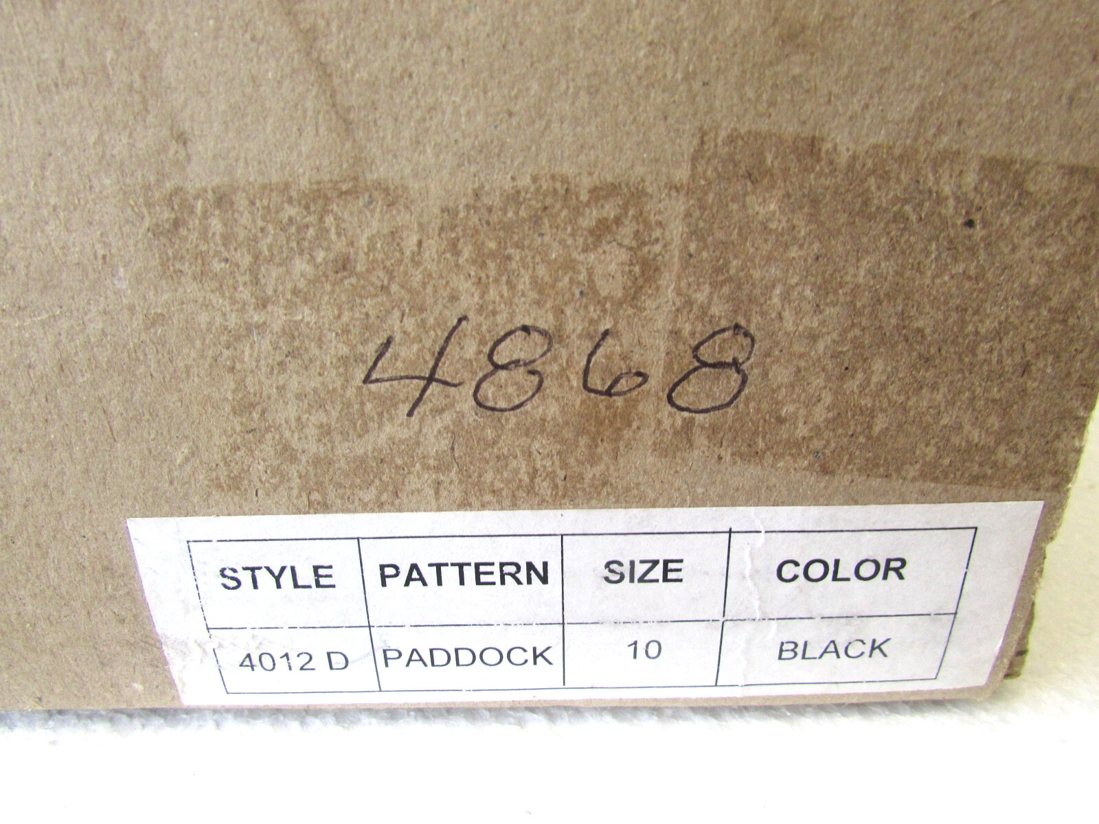 selling a pair of Smoky Mountain Paddock Zipper Riding Boots 4012 D Sz 10 Black w/ boxthese are new open box from a closed store. box has some handling wear and a small tear. boots unworn. photos are of the exact boots selling and shipping.$15 shipping US lower 48 CONUS.