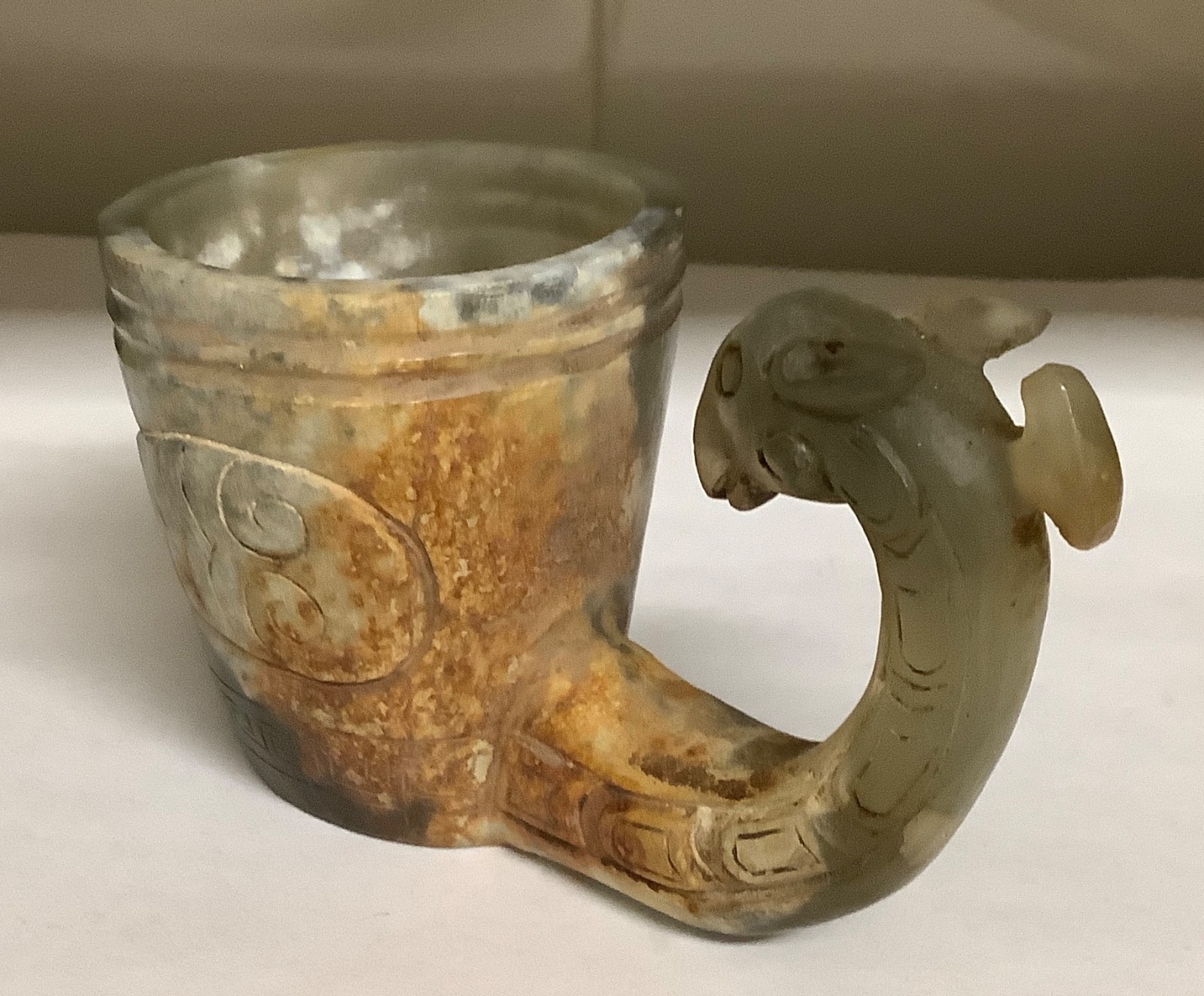 Han Dynasty Carved Jade Medicine Cup with Beast Handle Dragon Statue